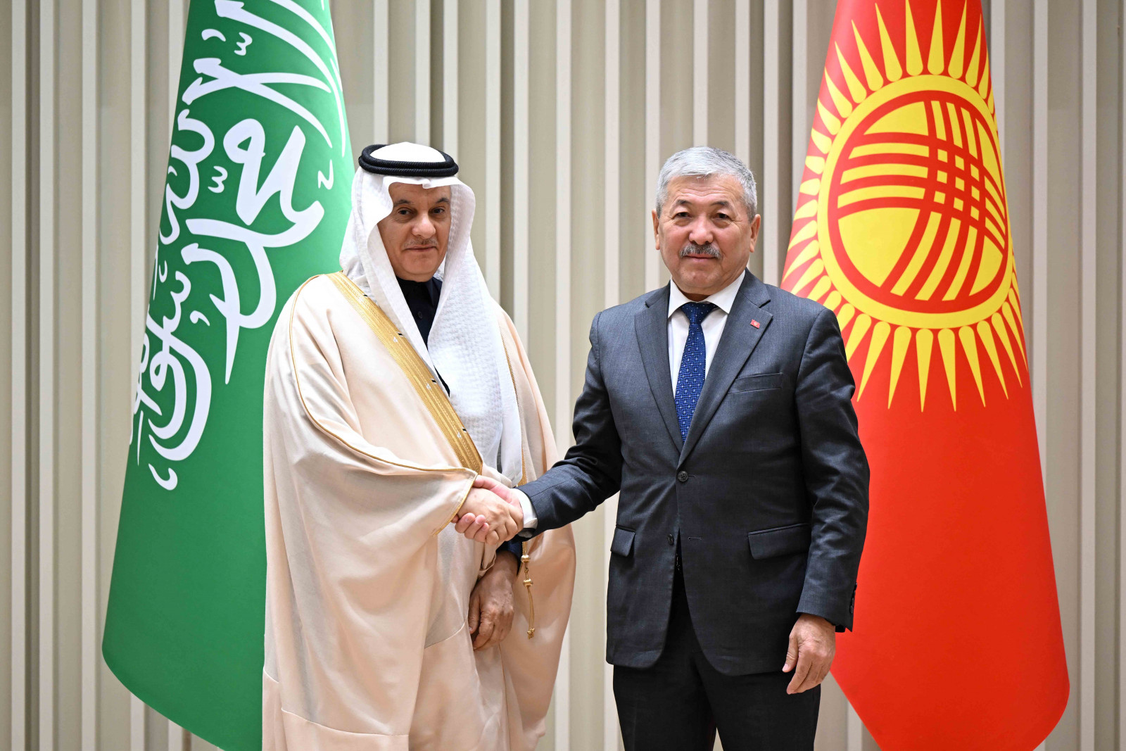Министрлер Кабинетинин Төрагасынын биринчи орун басары Адылбек Касымалиев саудиялык кесиптешин жылуу тосуп алып, “Ынтымак-Ордо” Президенттик Администрациянын жаңы имаратында биринчи жолу өкмөттөр аралык жыйын болуп жатканын белгиледи.