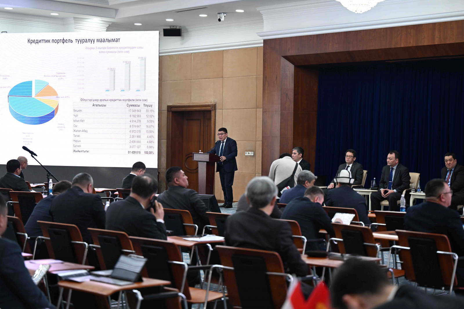 жетекчилери 2024-жылга ишинин жыйынтыгы жана 2025-жылга пландар жөнүндө жергиликтүү бийлик органдарынын жетекчилеринин отчетторун угуп жатышат.