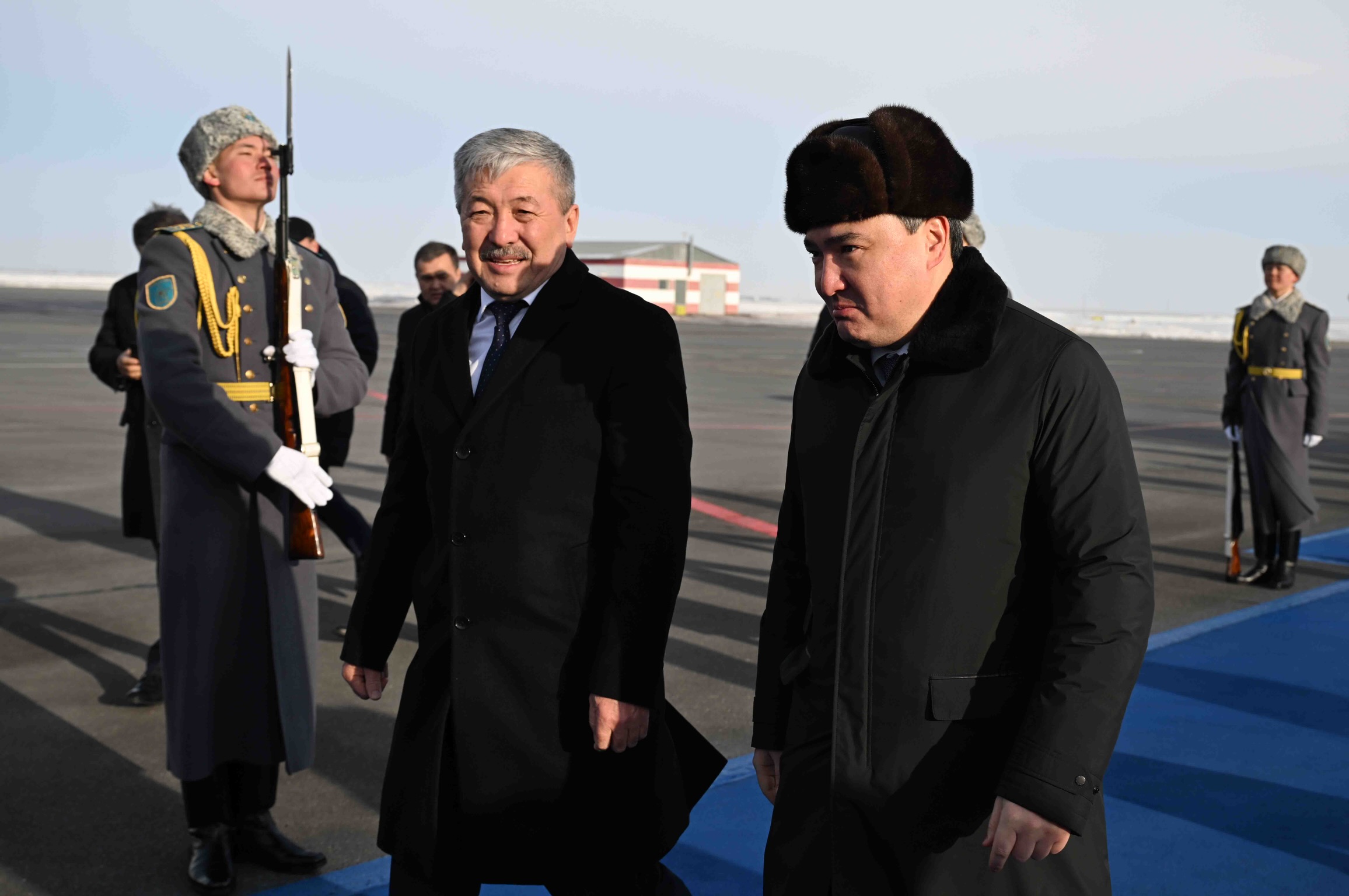 МинКаб Төрагасы Адылбек Касымалиевди Казакстандын Премьер-министри Олжас Бектенов тосуп алды.