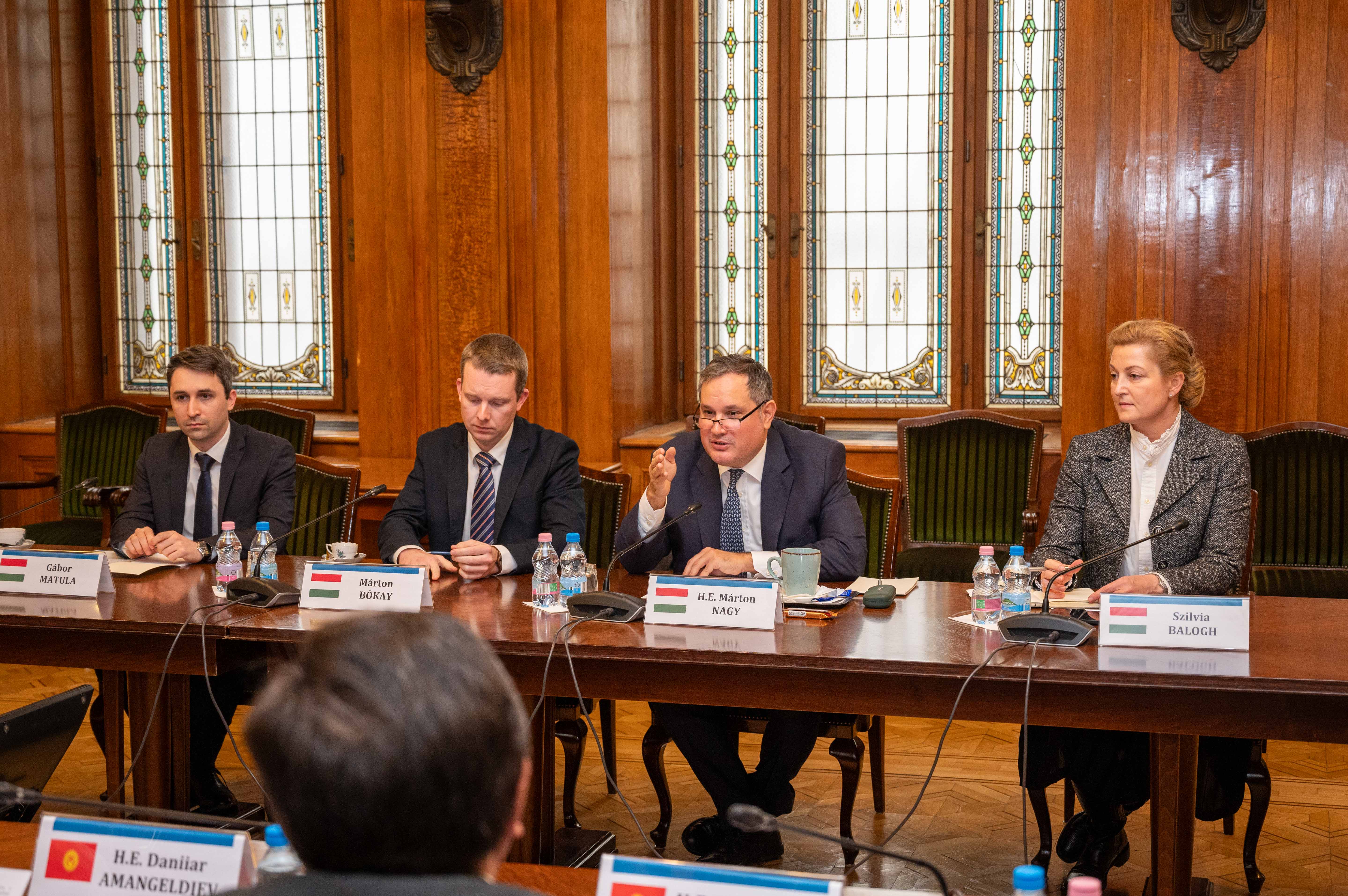 Министрлер Кабинетинин Төрагасынын биринчи орун басары Данияр Амангелдиев Кыргызстан менен Венгриянын ортосундагы стратегиялык өнөктөштүккө жана эки мамлекет башчыларынын колдоосуна негизделген кызматташтык динамикалуу өнүгүп жатканын канааттануу менен белгиледи. Ал Венгриянын Премьер-министри Виктор Орбанга Кыргыз Республикасынын Президенти Садыр Жапаровдун саламын жана изги каалоолорун айтты.
