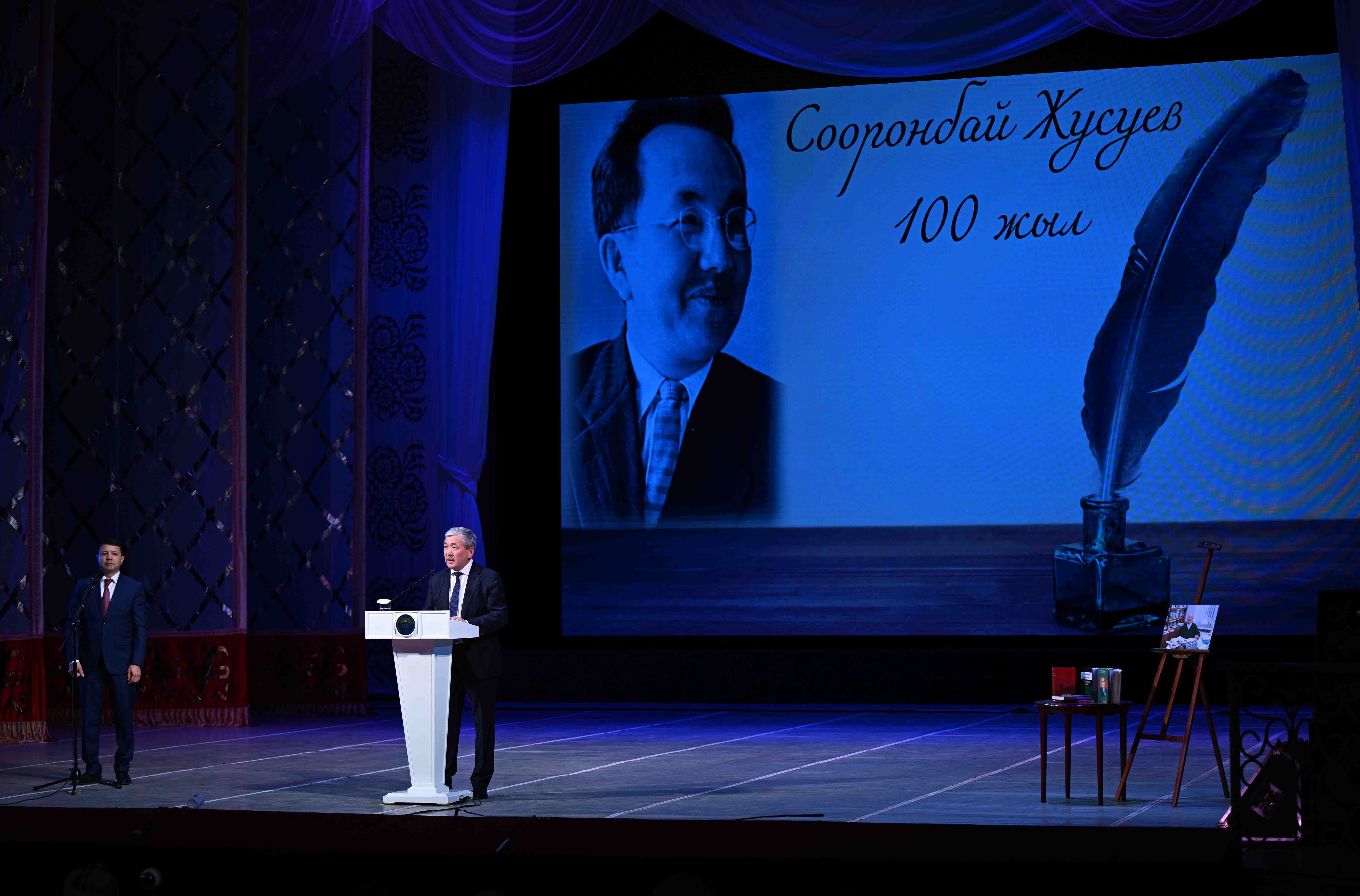 Бүгүн Абдылас Малдыбаев атындагы Кыргыз улуттук академиялык опера жана балет театрында Кыргыз Республикасынын Баатыры, Эл акыны, Токтогул атындагы Мамлекеттик сыйлыктын лауреаты Сооронбай Жусуевдин 100 жылдык мааракесине арналган салтанаттуу иш-чара болуп өттү.