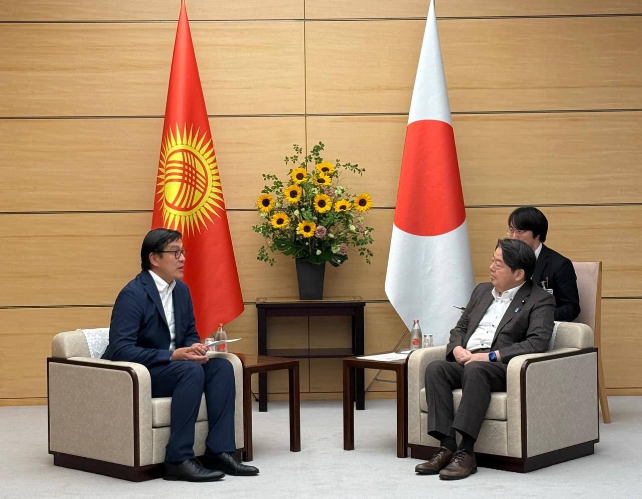 Тактап айтканда, МинКаб Төрагасынын орун басары Япониянын Министрлер Кабинетинин башкы катчысы Ёсимаса Хаяси менен жолугушуп, анда эки тараптуу кызматташуунун актуалдуу маселелери, анын ичинде саясий диалог, экономикалык байланыштар, инфраструктуралык жана гуманитардык долбоорлор талкууланды.