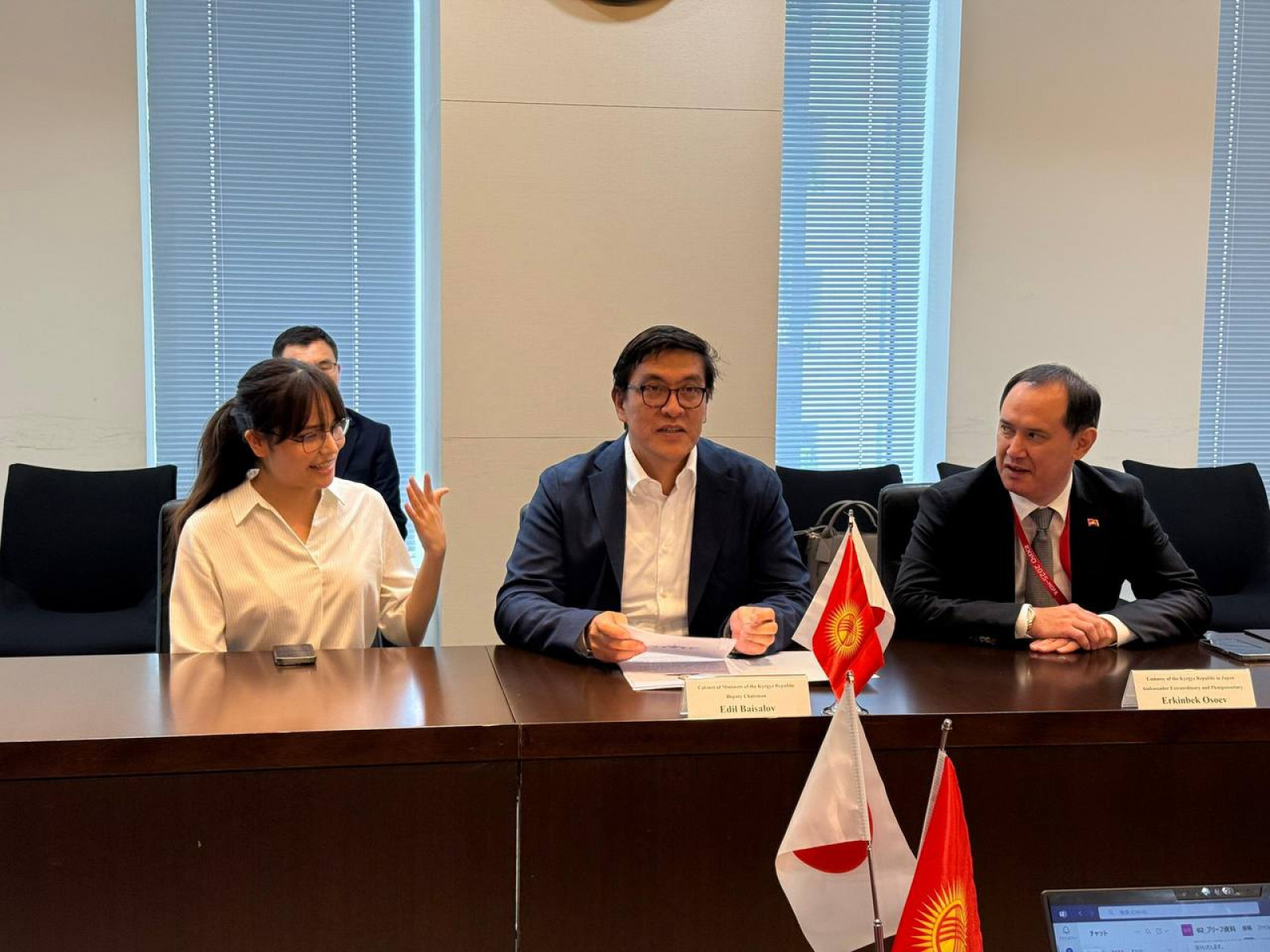 Токио, Япония, 4-июнь, 2025-жыл – Осака шаарындагы Бүткүл дүйнөлүк ЭКСПО-2025 көргөзмөсүндө Кыргыз Республикасынын Улуттук күнүнө арналган иш-чарага катышуу үчүн Японияга жумушчу сапарынын алкагында Кыргыз Республикасынын Министрлер Кабинетинин Төрагасынын орун басары Эдил Байсалов Япония өкмөтүнүн өкүлдөрү менен бир катар эки тараптуу жолугушууларды өткөрдү.