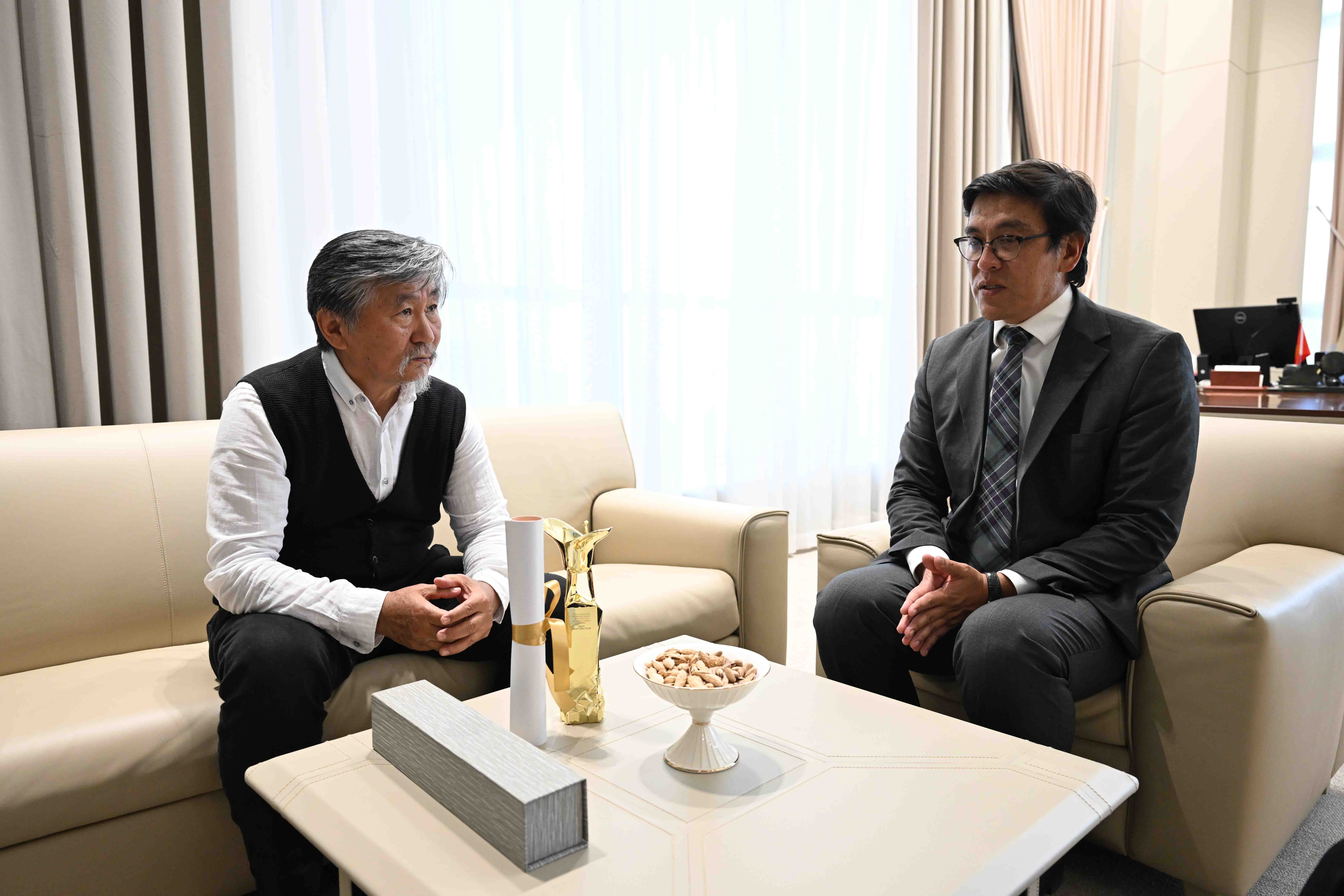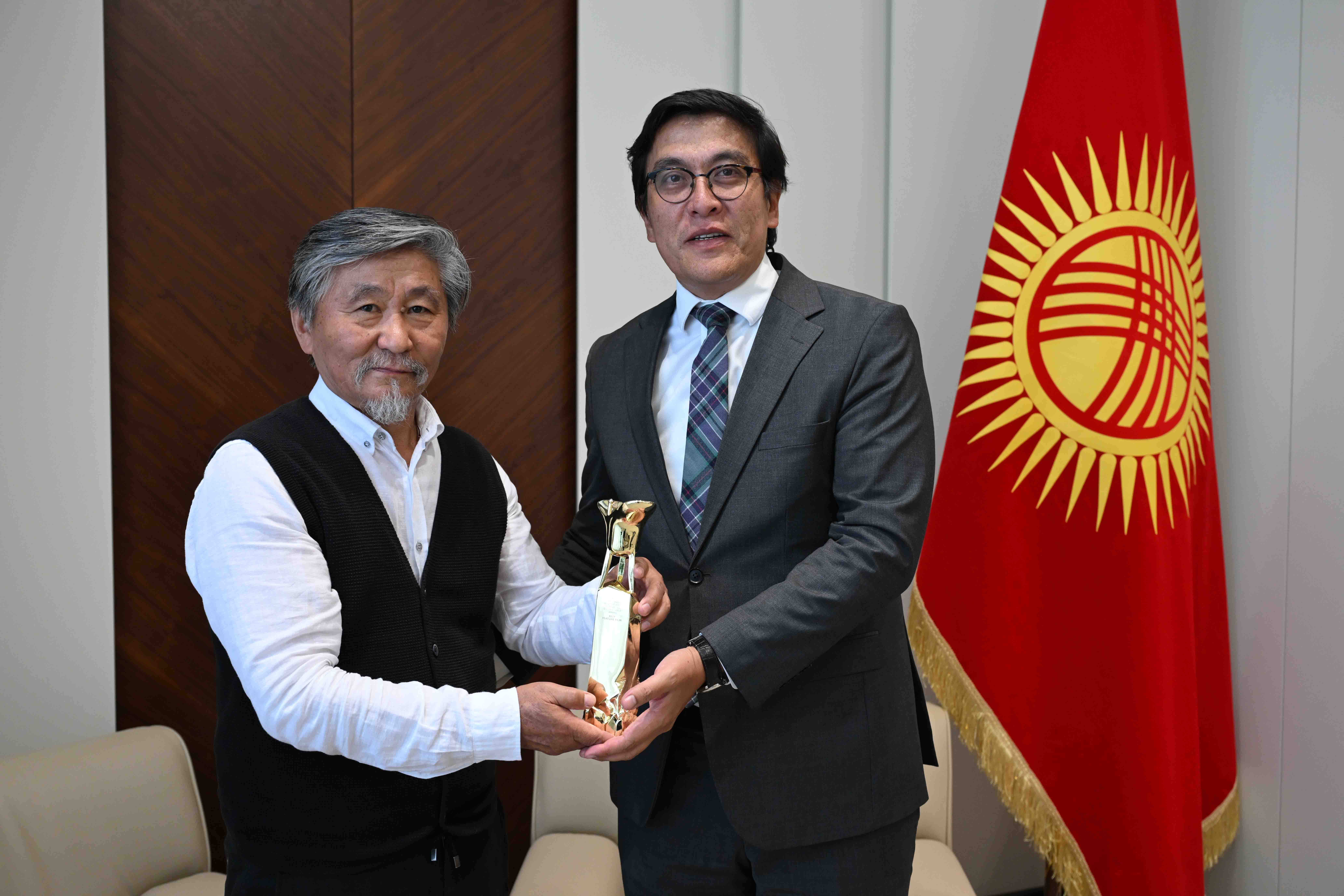 Министрлер Кабинетинин Төрагасынын орун басары Эдиль Байсалов жаңы тасмасы «Кара Кызыл Сары» Шанхай эл аралык кинофестивалында жеңишке жетишине байланыштуу Кыргыз Республикасынын эл артисти, белгилүү кинорежиссер Актан Арым Кубатты кабыл алды.