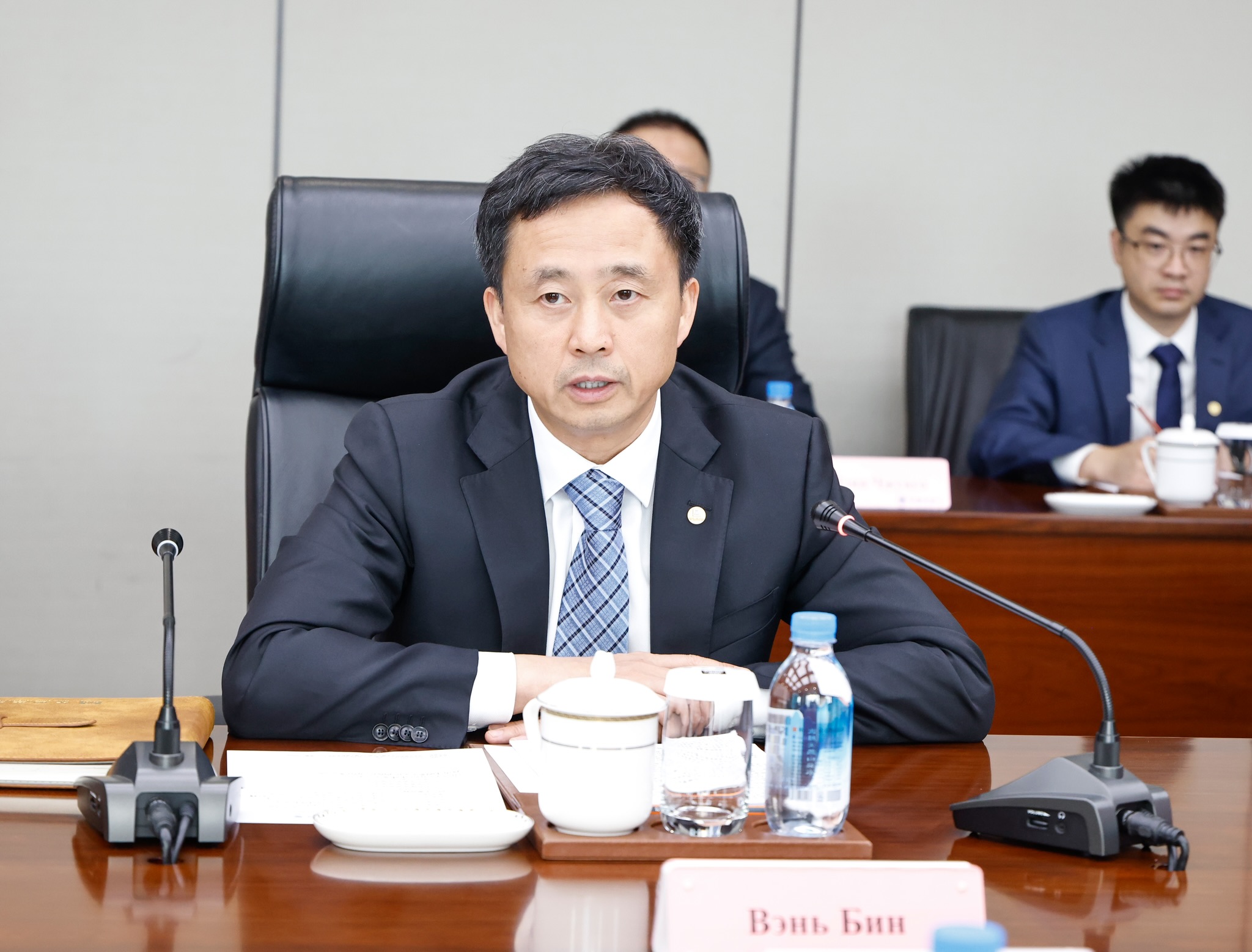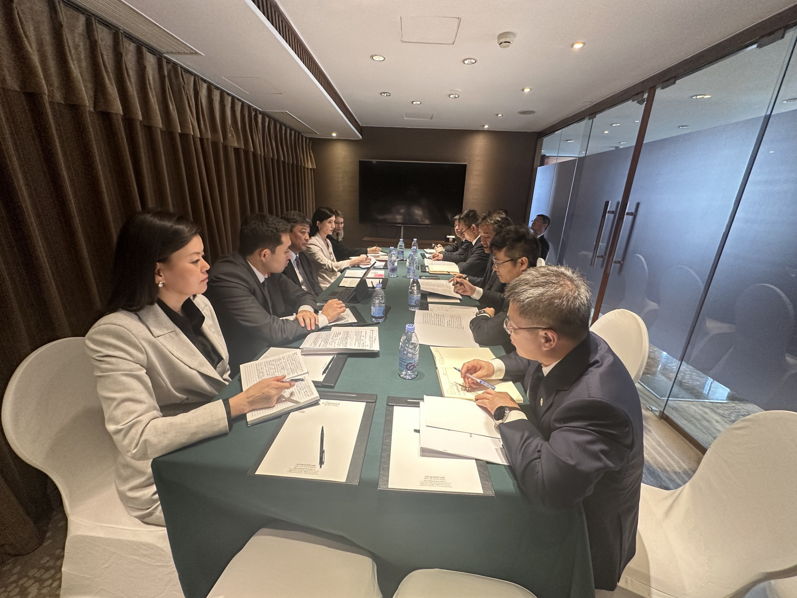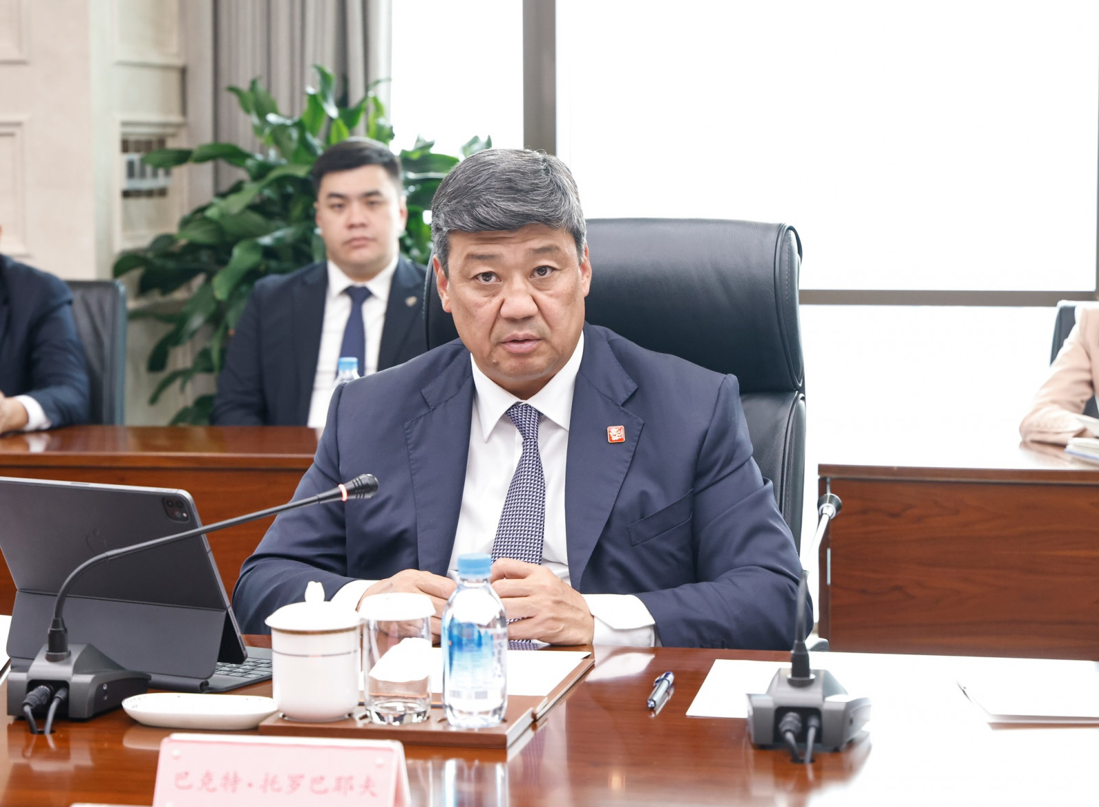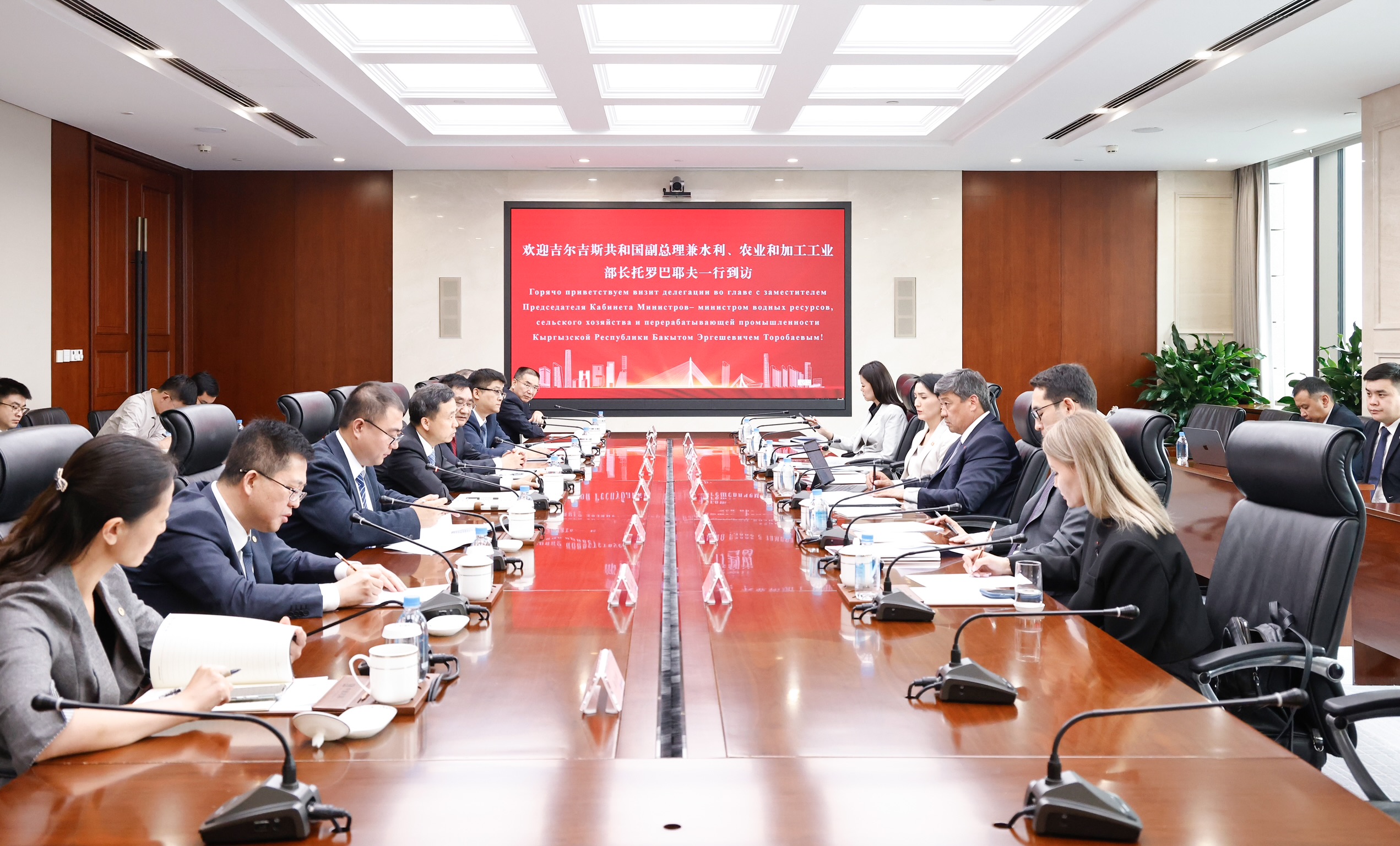 Пекин шаары, Кытай Эл Республикасы, 2025-жылдын 8-июлу — Кыргыз Республикасынын Министрлер Кабинетинин Төрагасынын орун басары – Суу ресурстары, айыл чарба жана кайра иштетүү өнөр жайы министри Бакыт Төрөбаев жумуш сапарынын алкагында Кытай менен Кыргызстандын мамлекеттик чек арасындагы “Бедел” өткөрүү бекетине алып барчу Барскоон–Учтурфан–Аксу автожолун куруу боюнча Кытайдын бир катар корпорацияларынын жетекчилери менен сүйлөшүү жүргүздү.