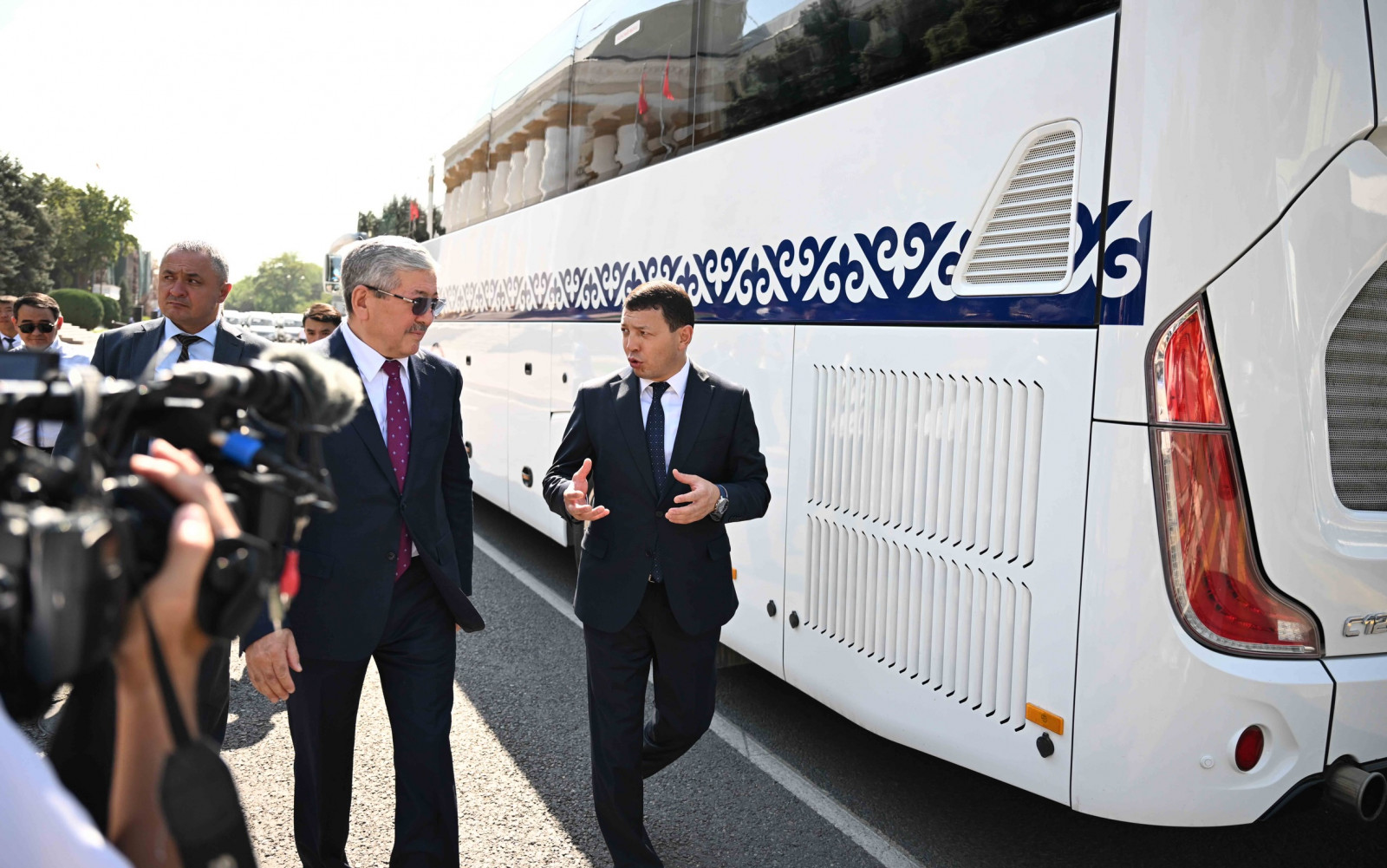 “Маданият тармагынын жаңы унаалуу болушу – чоң кубаныч. Айрыкча алыскы райондордун маданият кызматкерлеринин ишинин натыйжалуулугу транспорттун жеткиликтүүлүгүнөн түздөн-түз көз каранды. Жаңы автобустар – китептерди, жабдууларды, адистерди өз убагында жеткирүүгө, көчмө концерттерди, көргөзмөлөрдү уюштурууга, маданий-агартуу иш-чараларын өткөрүүдө кызматкерлерге ыңгайлуу шарт түзөт деп ишенебиз. Урматтуу маданият кызматкерлери, Сиздерге чыгармачылык ишмердүүлүктү үзүрлүү жүргүзүүгө мыкты шарттарды түзүү мындан ары да улантылат. Дагы бир жолу алган автоунааңыздар кут болсун”, – деди МинКаб Төрагасы Адылбек Касымалиев