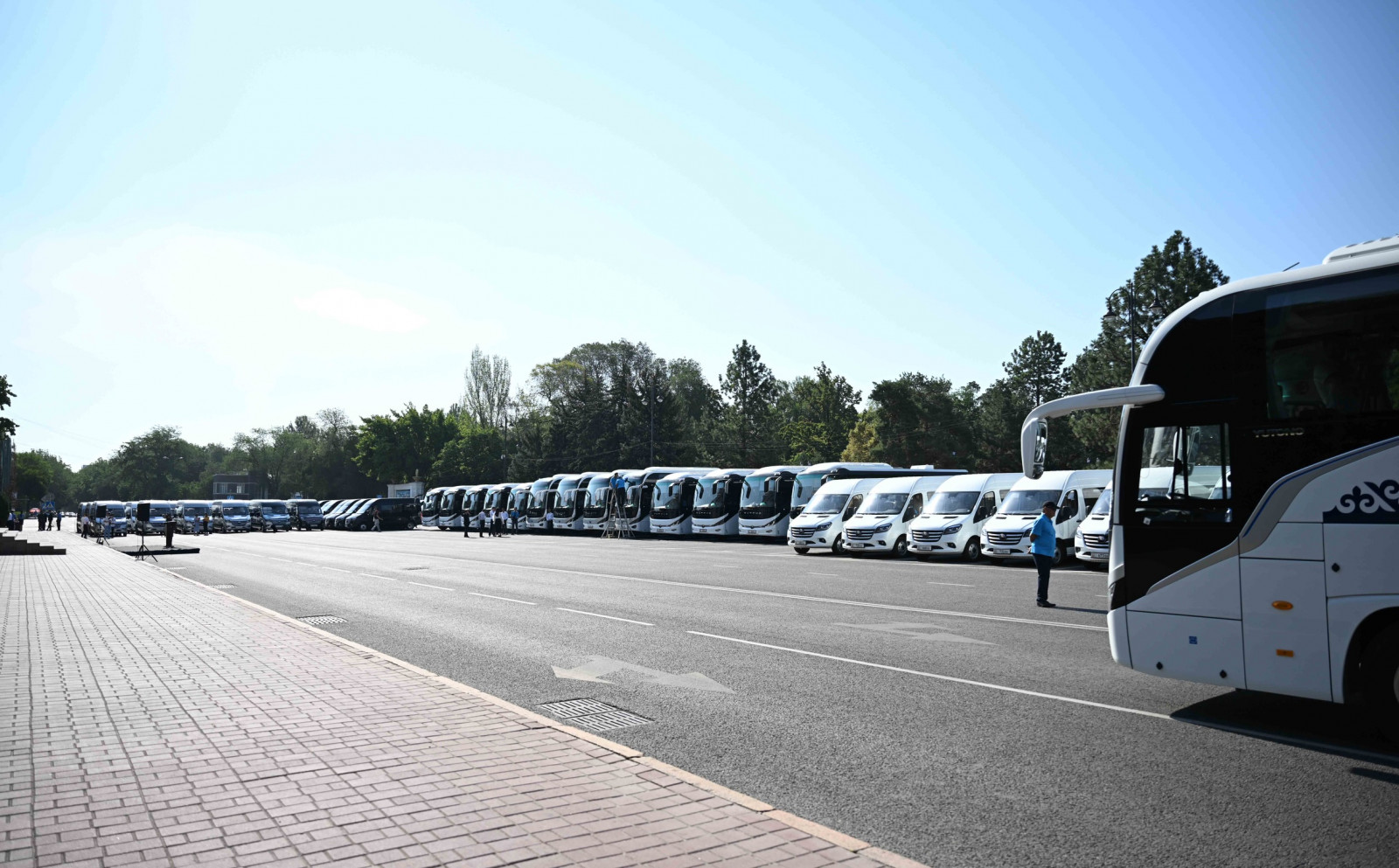 Бишкек шаары, Т. Усубалиев атындагы аянт, 2025-жылдын 18-июлу – Кыргыз Республикасынын Министрлер Кабинетинин Төрагасы – Кыргыз Республикасынын Президентинин Администрациясынын Жетекчиси Адылбек Касымалиев Кыргыз Республикасынын Маданият, маалымат жана жаштар саясаты министрлигине жаңы автоунаалардын ачкычын тапшырды.