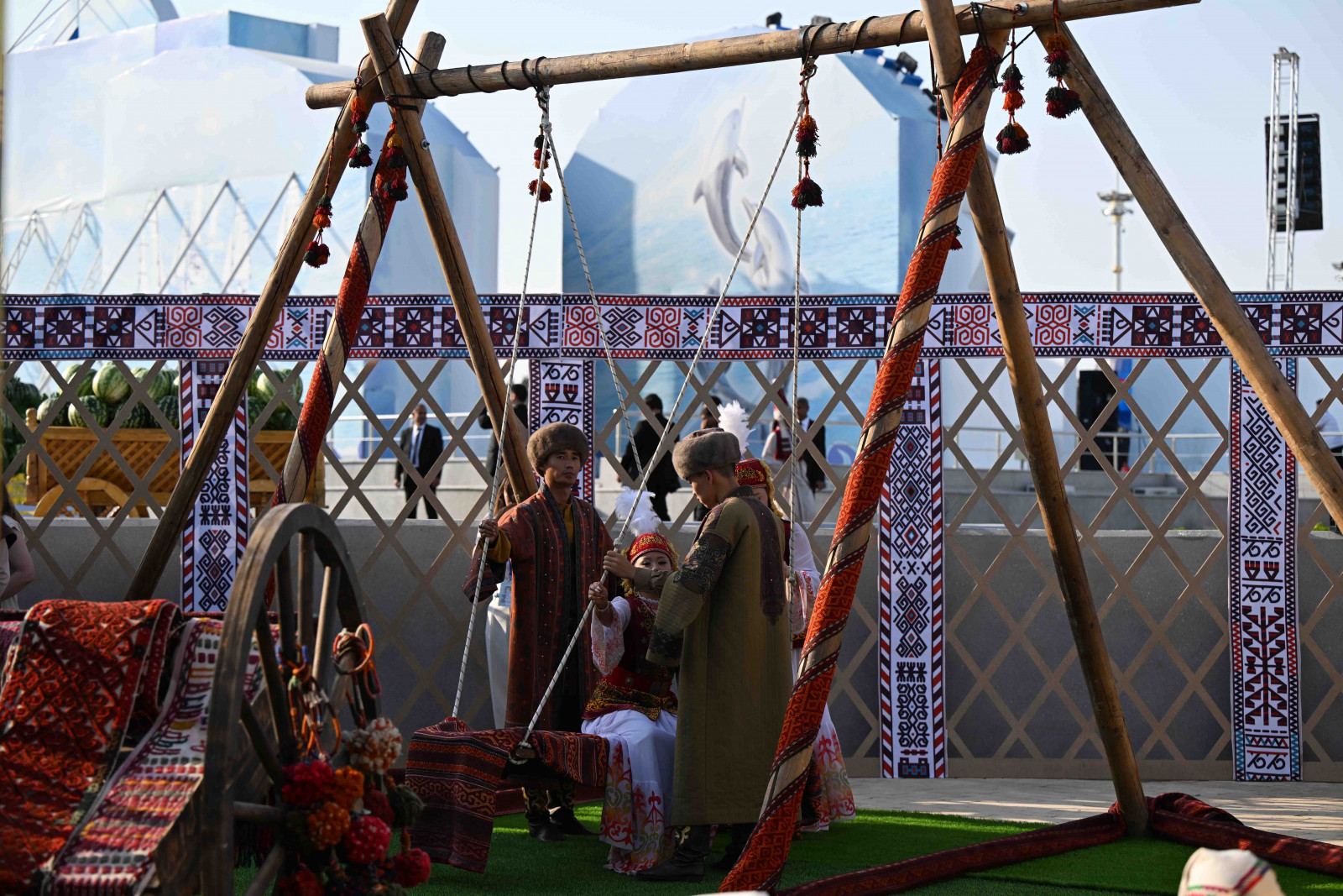 Кыргыз Республикасынын Министрлер Кабинетинин Төрагасы-Президенттин Администрациясынын Жетекчиси Адылбек Касымалиев Түркмөнстанга болгон иш сапарынын соңунда, БУУ конференциясына келген делегация башчылары менен биргеликте, Каспий деңизинин боюндагы Аваза туристтик аймагында өткөн "Борбордук Азия өлкөлөрүнүн улуттук күндөрүнүн" маданий иш-чараларына катышты.