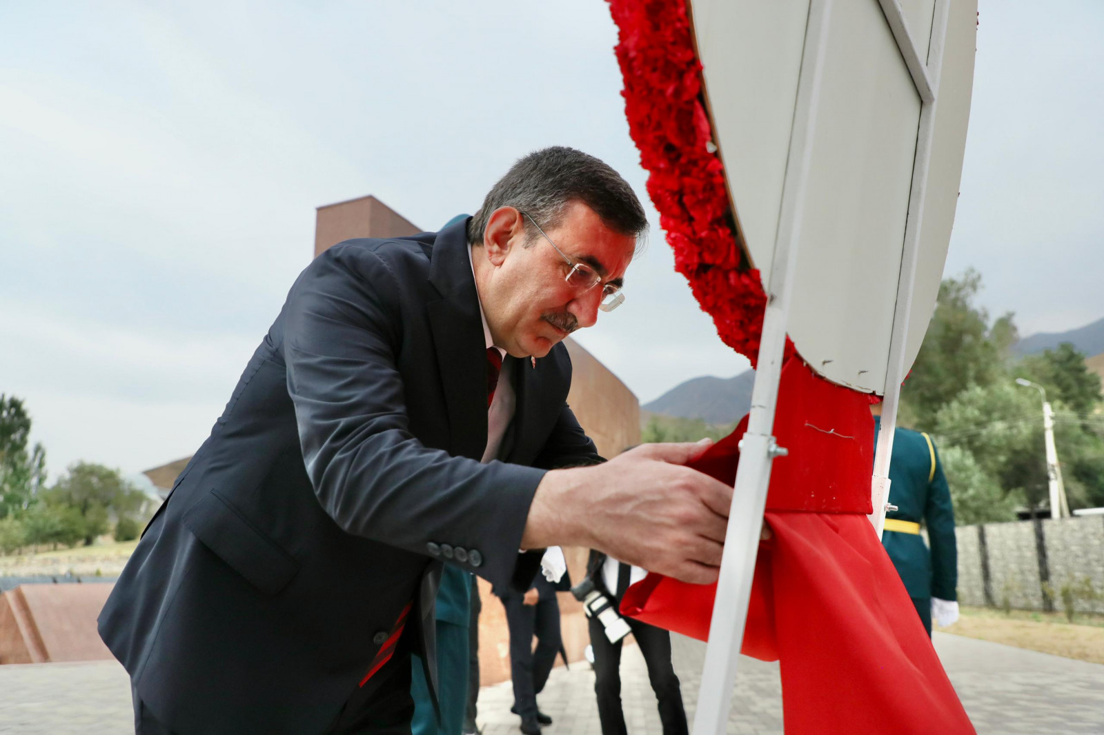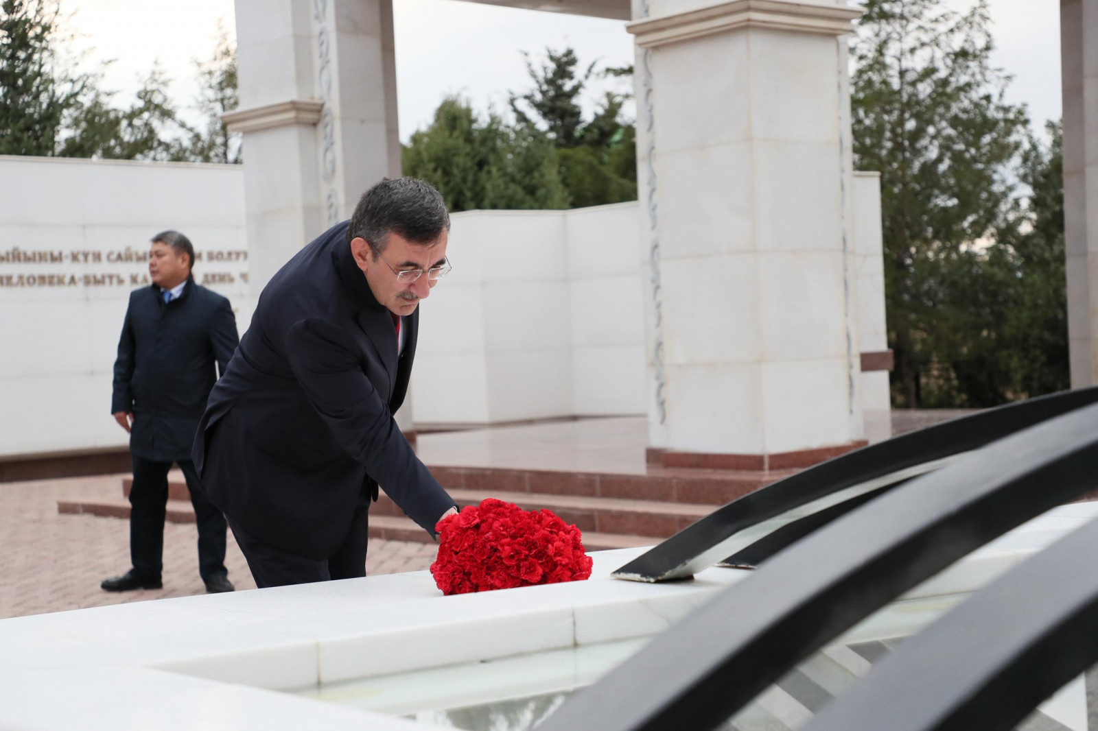 Бишкек шаары, "Ата-Бейит", 2025-жылдын 17-сентябры – Кыргыз Республикасына расмий сапар менен келген Түркия Республикасынын Вице-Президенти Жевдет Йылмаз "Ата-Бейит" тарыхый-мемориалдык комплексине барды.