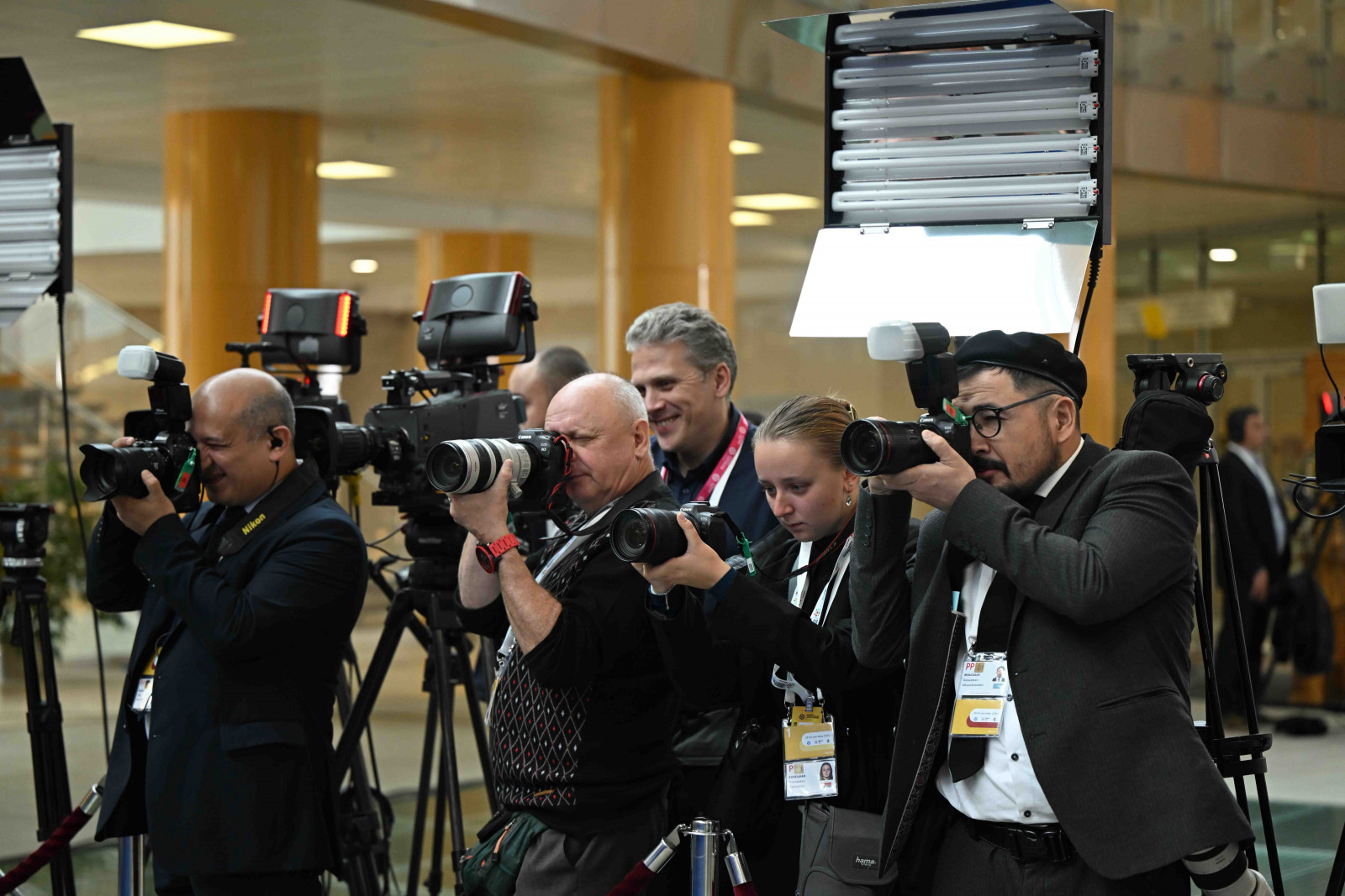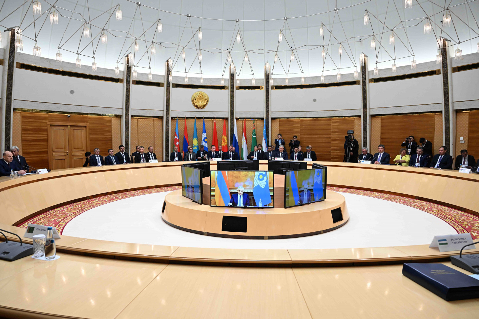 Жолугушуунун алдында делегация башчылары үчүн сүрөткө түшүү аземи болуп өттү.