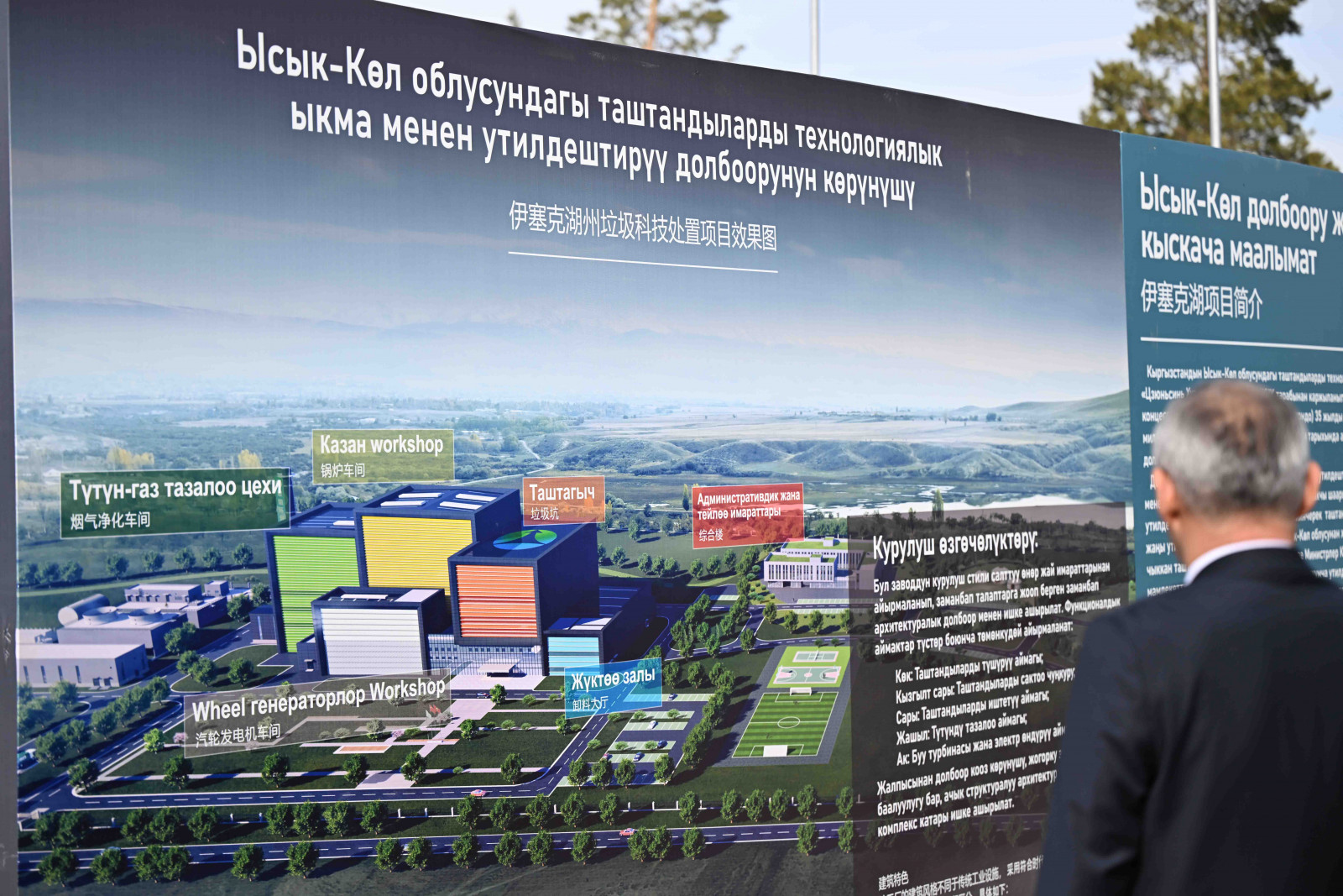 Министрлер Кабинетинин Төрагасы Адылбек Касымалиев Кыргыз Республикасында экологиялык абалды жакшыртуу жана калктын жашоо сапатын жогорулатуу максатында таштандыларды технологиялык ыкма менен кайра иштетүү аркылуу электр энергиясын өндүрүүчү ири инвестициялык долбоорлор ишке ашырылып жатканын белгилеп, бул багытта Кытай Эл Республикасынын “Хунань Цзюньсинь Хуаньбао” компаниясы Кыргызстандагы өнөктөштөр менен биргеликте үч ири долбоорду — Бишкек, Ош жана Ысык-Көл долбоорлорун — ишке ашырып жатканын белгиледи.