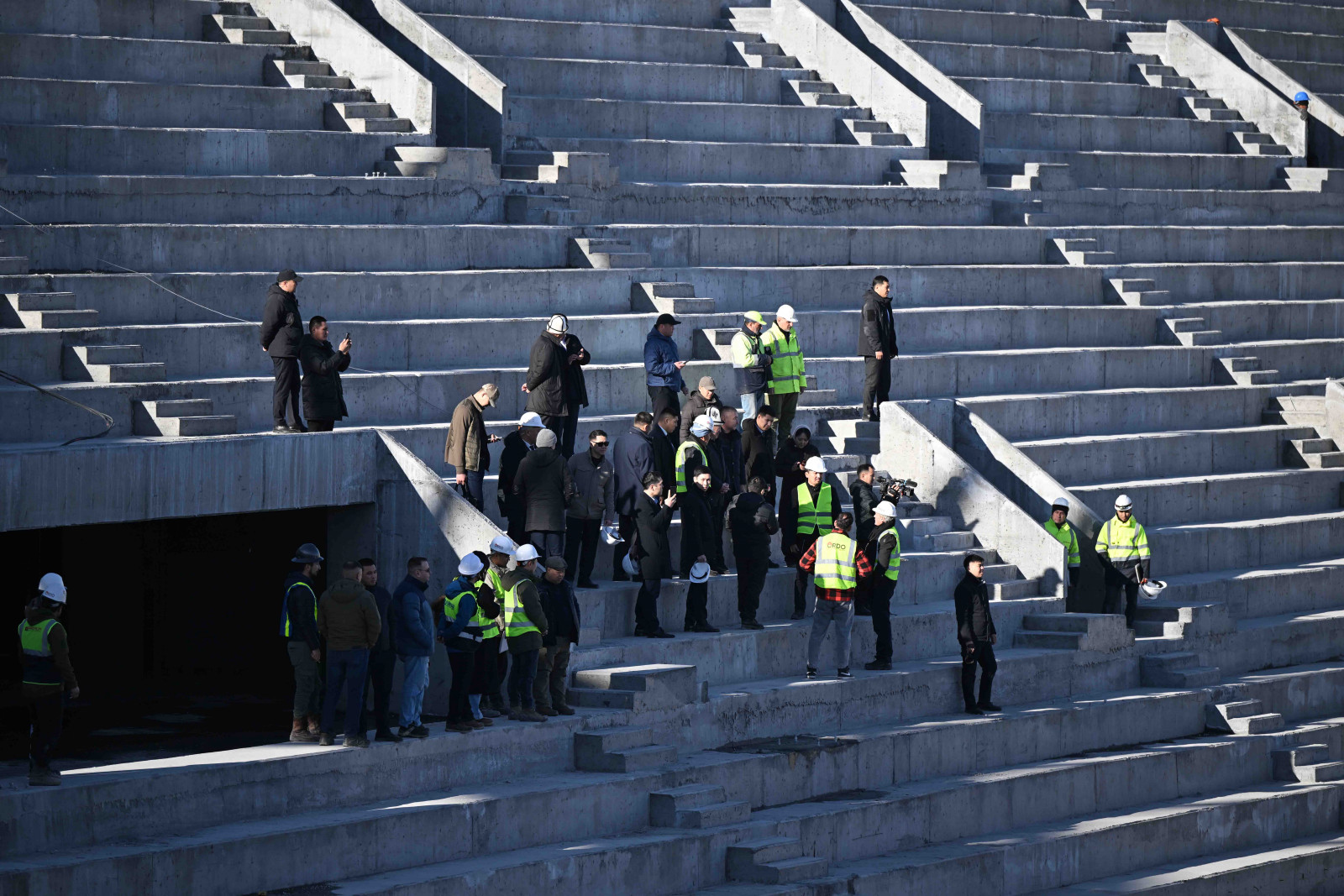 Мында, Каныбек Туманбаев курулуштун жүрүшү тууралуу кеңири маалымат берди. Жалпы 51 миң көрүүчүгө ылайыкталган спорт комплекси ФИФАнын стандарттарын сактоо менен курулууда. Стадион өлкөдөгү эң ири спорттук объект болуп, Кыргызстанда дүйнөлүк деңгээлдеги футбол беттештерин жана маданий иш-чараларды өткөрүүгө шарт түзүлөт.