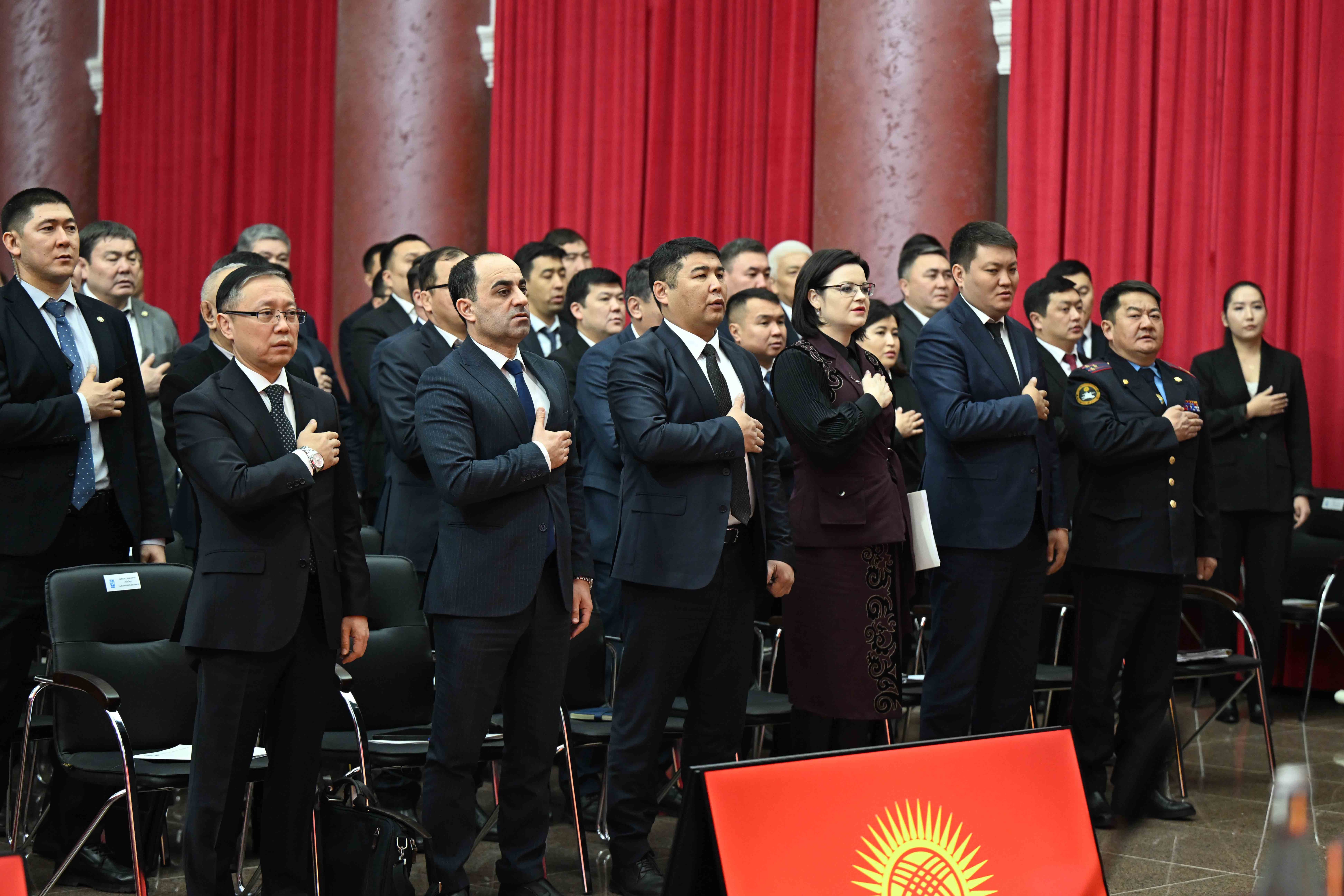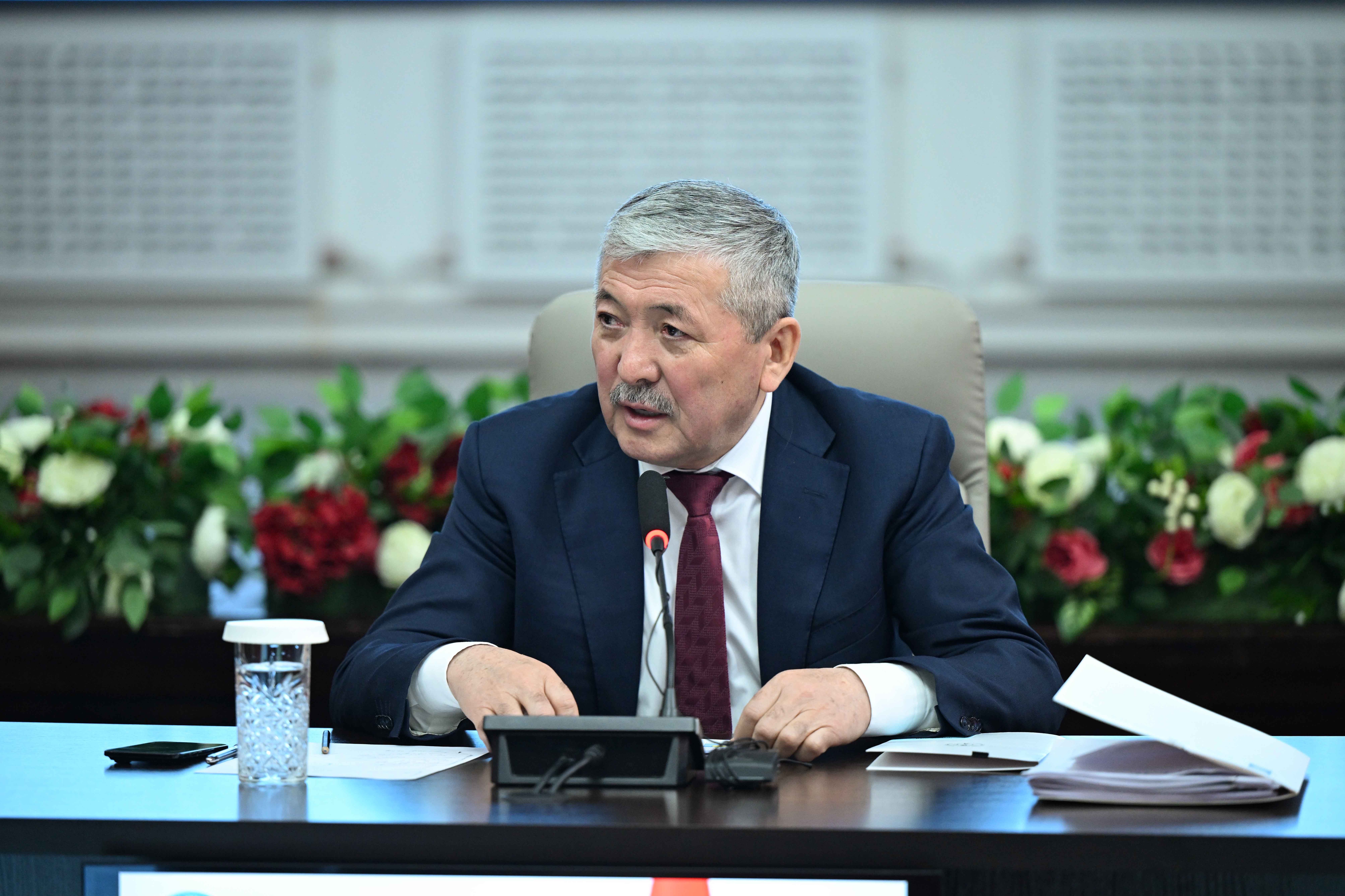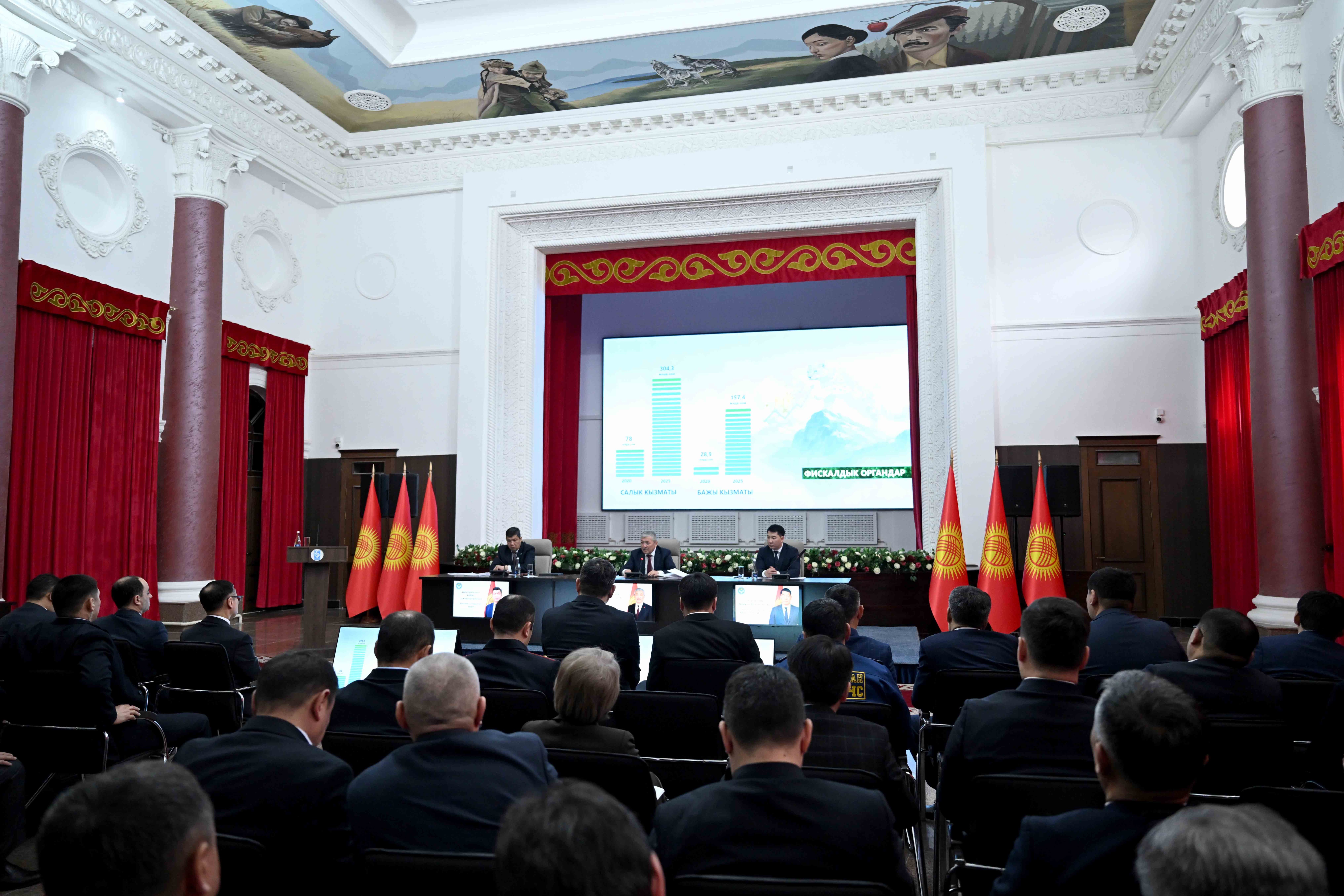 Бишкек, 12-февраль – Кыргыз Республикасынын Министрлер Кабинетинин Төрагасы Президенттин Администрациясынын Жетекчиси Адылбек Касымалиев Бишкек шаарынын мэриясынын 2025-жылдагы муниципалитеттин ишмердүүлүгүнүн жыйынтыгы жана 2026-жылга пландары боюнча коллегиясынын жыйынына катышты.