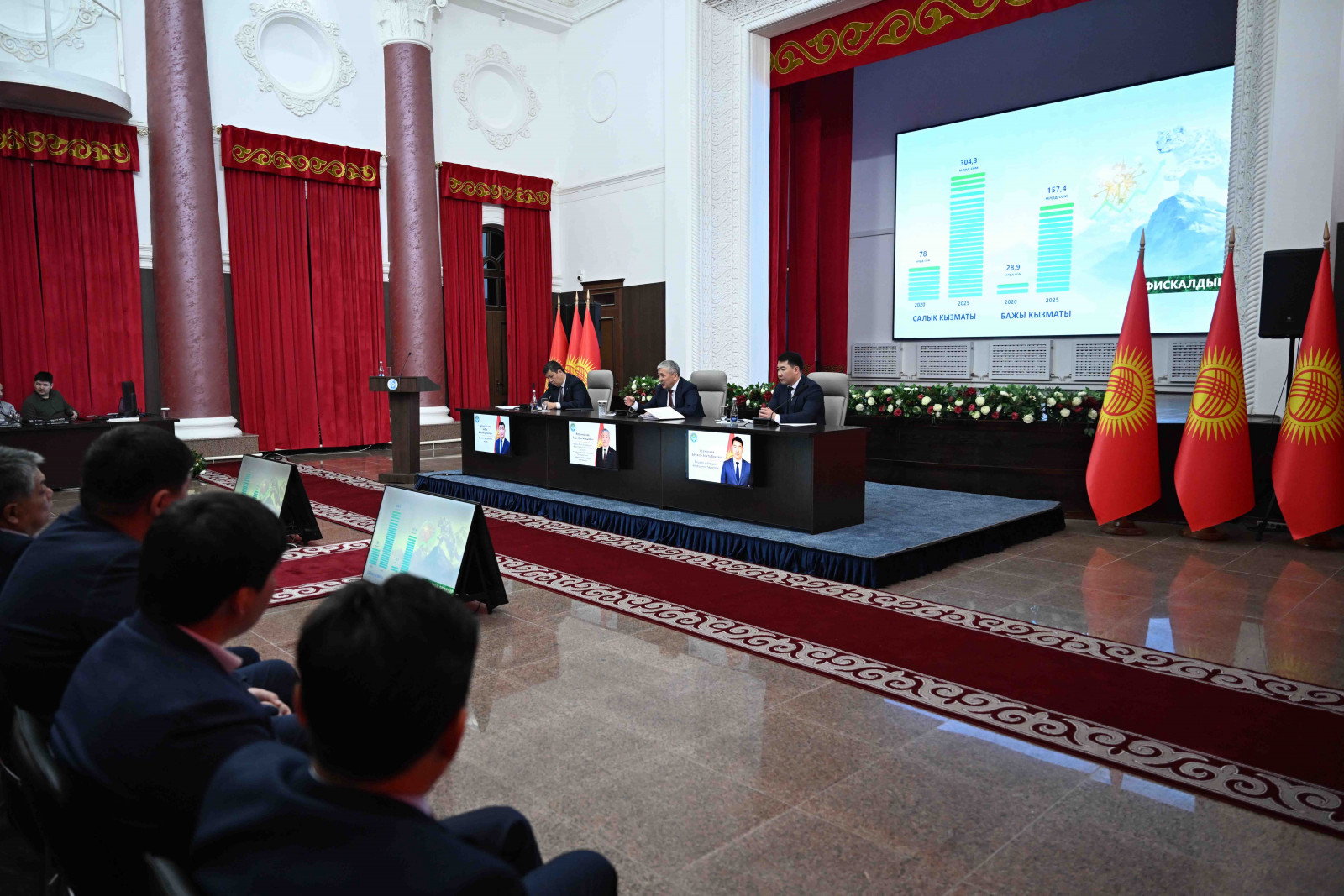 МинКаб башчысы өткөн жылдын маанилүү социалдык-экономикалык жетишкендиктерин белгилеп, өзгөчө акыркы беш жылда өлкөнүн консолидацияланган бюджети беш эсеге көбөйүп, 1 триллион сомдон ашык тарыхый көрсөткүчкө жеткенин айтты. Мамлекеттик каражаттардын өсүшү бүткүл өлкөнү модернизациялоого жана жаңылоого мүмкүнчүлүктөрдү түзөт.