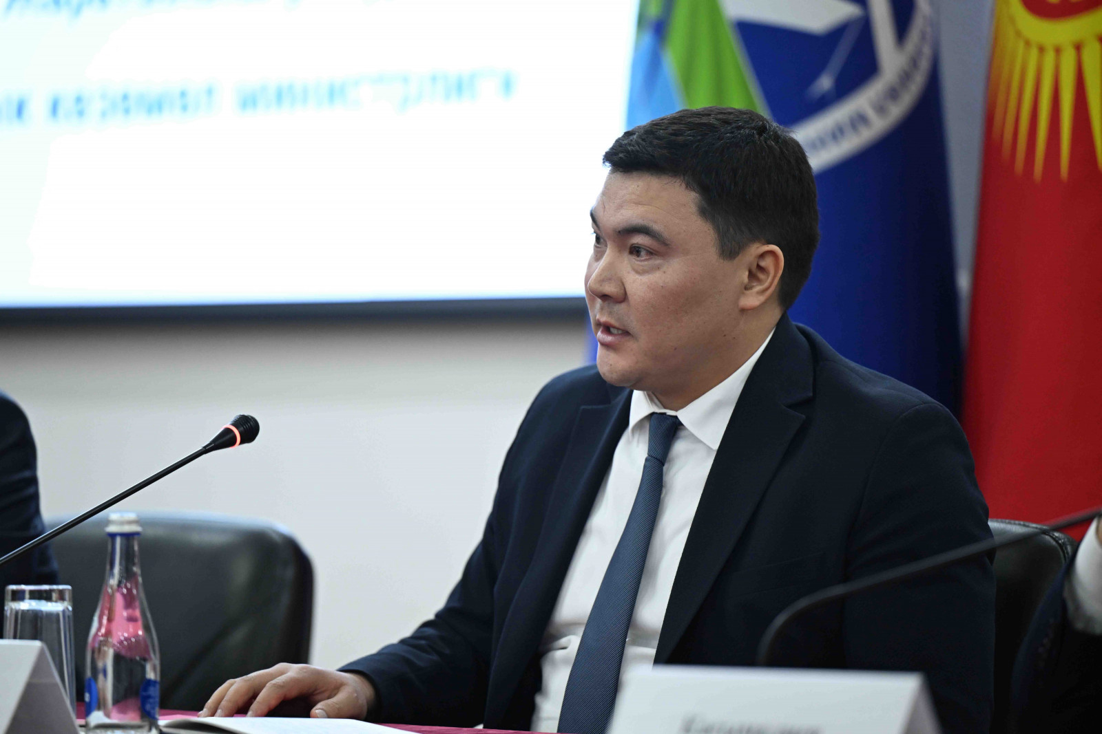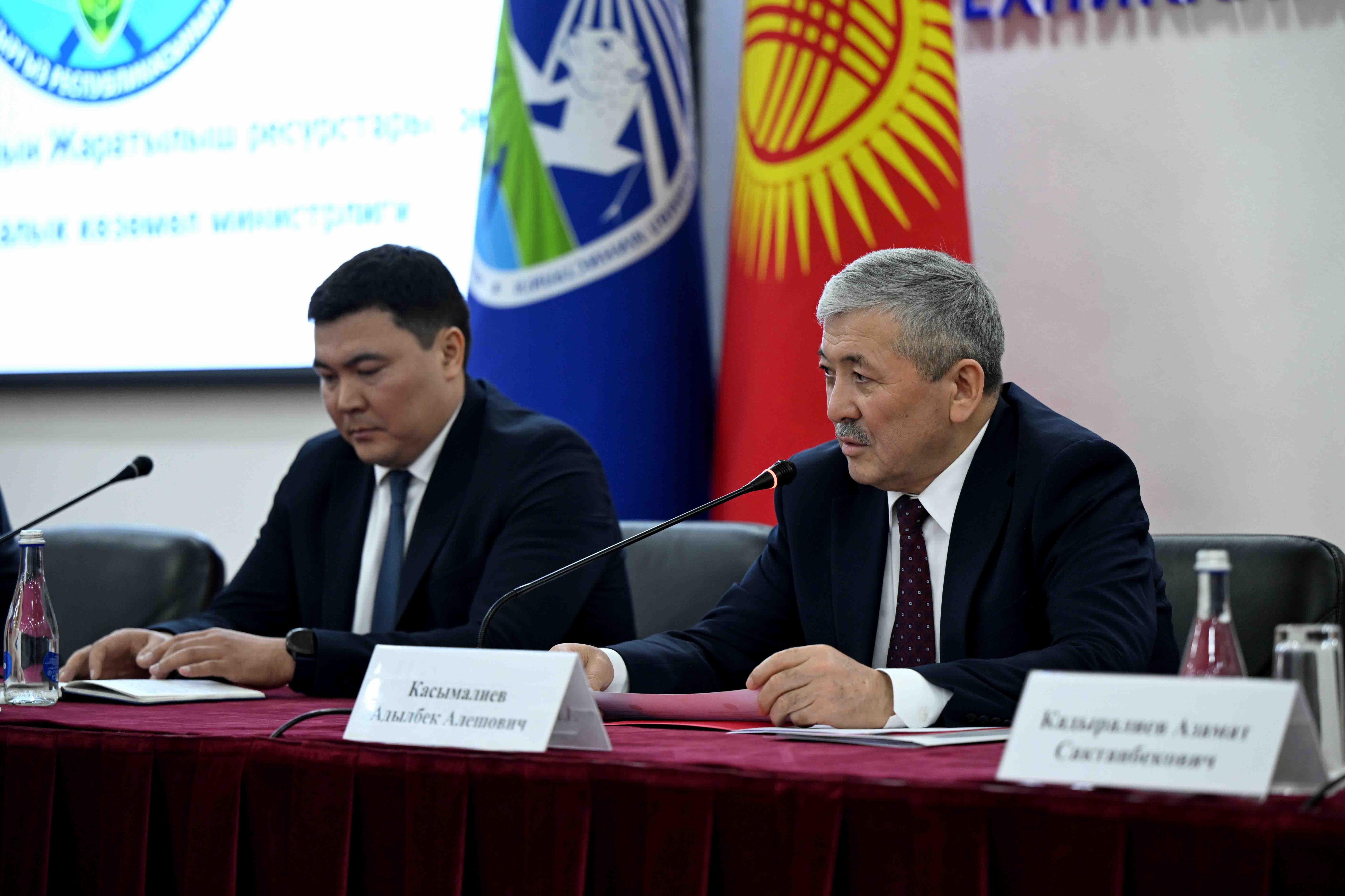 МинКаб башчысы Адылбек Касымалиев Жаратылыш ресурстары, экология жана техникалык көзөмөл министрлигинин жамаатына министрдин милдетин аткаруучу Акыл Токтобаевди тааныштырды