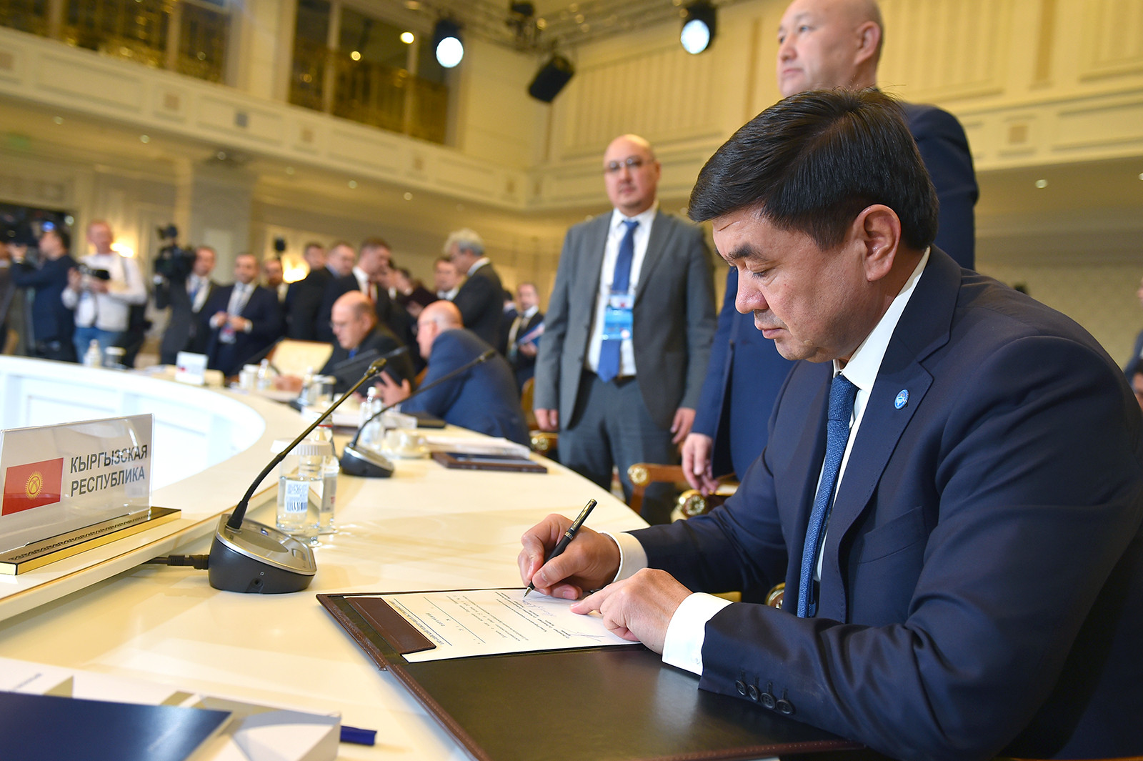 Кыргыз Республикасынын Премьер-министри Мухаммедкалый Абылгазиев Казакстан Республикасына иш сапарынын жүрүшүндө Алматы шаарында өткөн Евразия өкмөттөр аралык кеңешинин кезектеги отурумуна катышты.