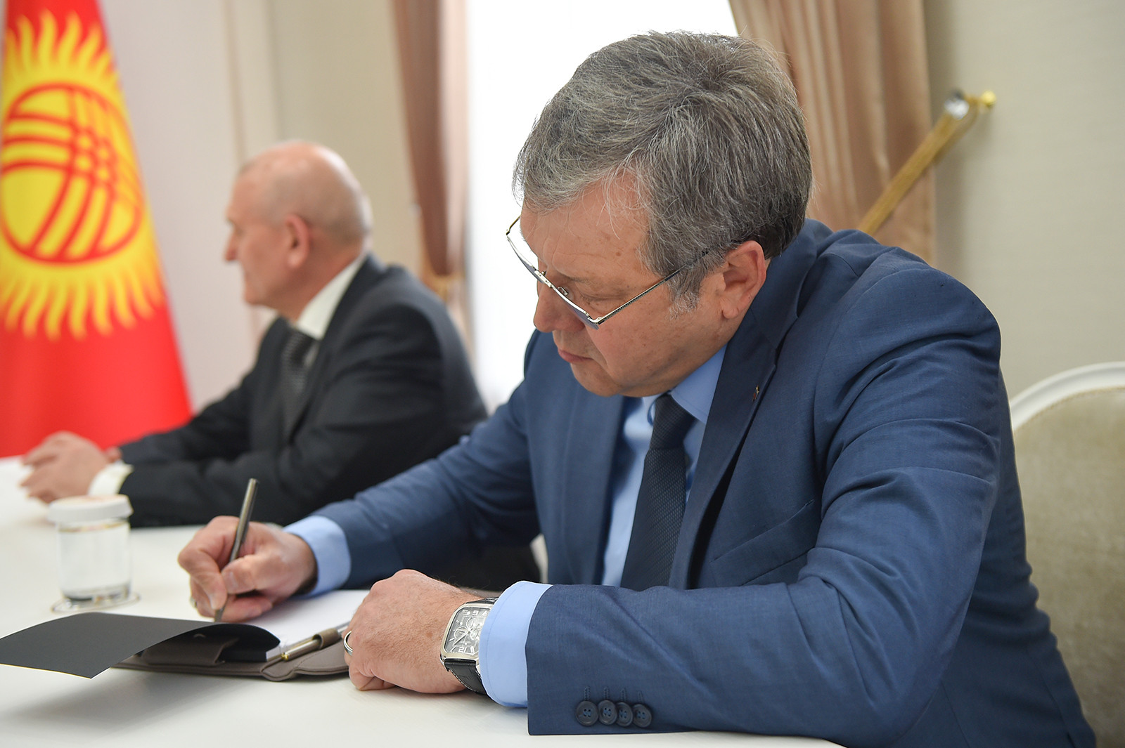 «Кыргыз Республикасы жана Россия Федерациясы өзгөчө тыгыз жана жылуу мамиледе. Россия тарап өз ара пайдалуу экономикалык кызматташтыкка жана Кыргызстанда тил саясатын улантууга кызыкдар. Кыргыз Республикасында бир катар олуттуу программалар ишке ашырылууда. Маанилүү элементтердин бири катары Россиянын кошумча инвестицияларын тартуу, ошондой эле өлкөлөр ортосундагы экономикалык кызматташтыкка басым жасоо болуп саналат. Россия Федерациясы салык тутумун модернизациялоого жана товарларга байкоо жүргүзүүчү маркировкалоо тутумун ишке киргизүүгө көмөктөшүүгө даяр», - деп белгиледи элчи.