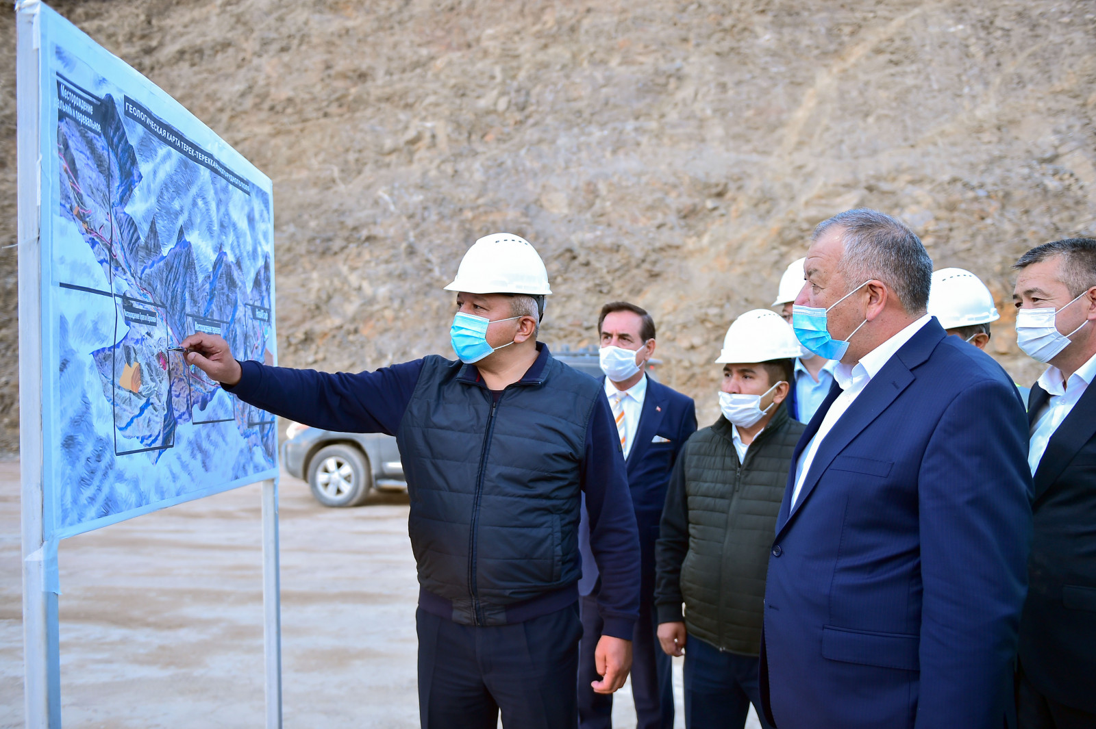 Кыргыз Республикасынын Премьер-министри Кубатбек Боронов Жалал-Абад облусуна жасаган жумуш сапарынын алкагында Терек, Тереккан жана Перевальное кендеринде иш алып барган тоо кен ишканасынын иши менен таанышты.