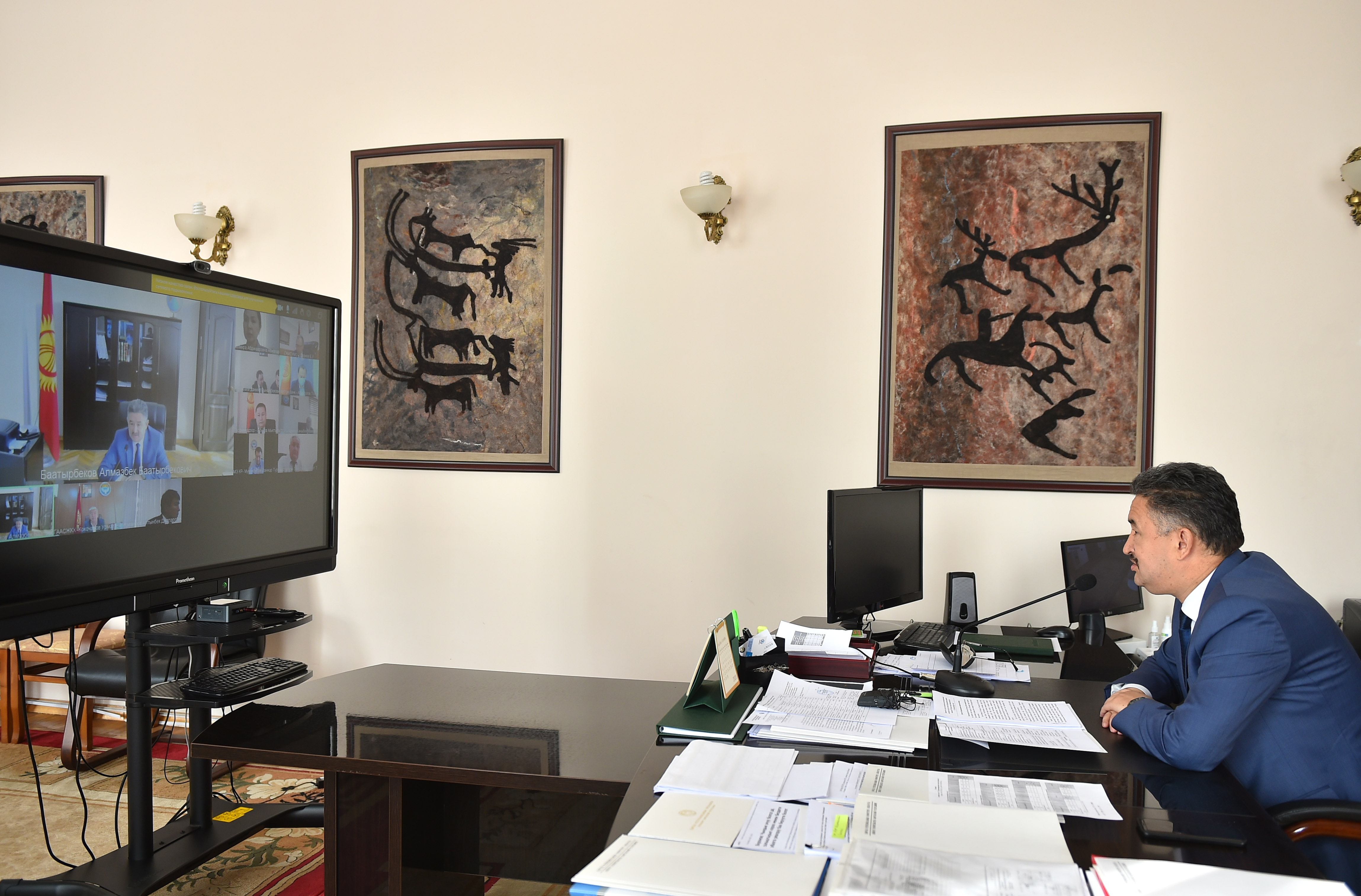 Кыргыз Республикасынын биринчи вице-премьер-министри Алмазбек Баатырбековдун төрагалыгында мамлекеттик турак жай саясатынын ишке ашырылышына мониторинг жүргүзүү боюнча Координациялык кеңештин отуруму өттү.