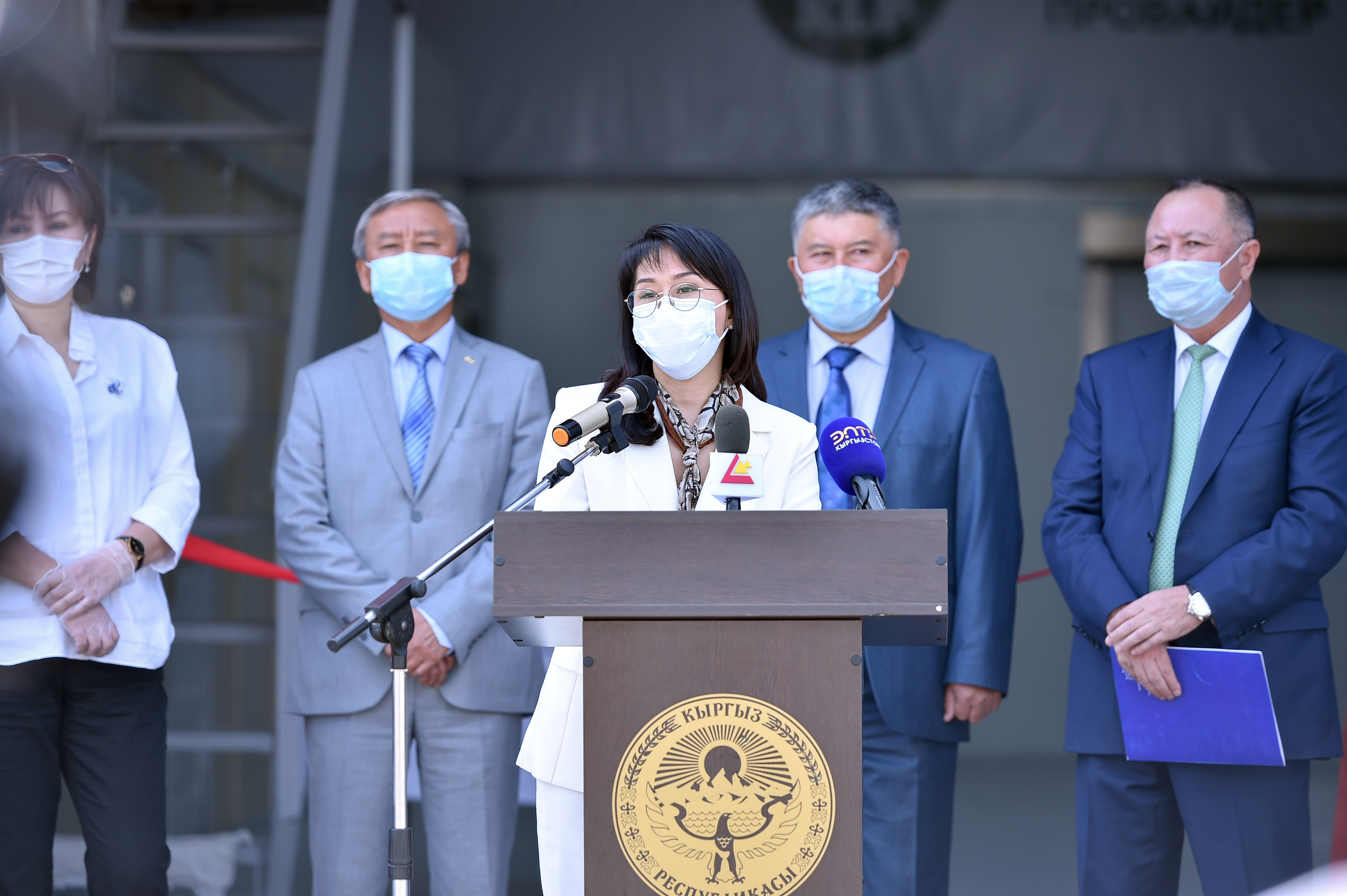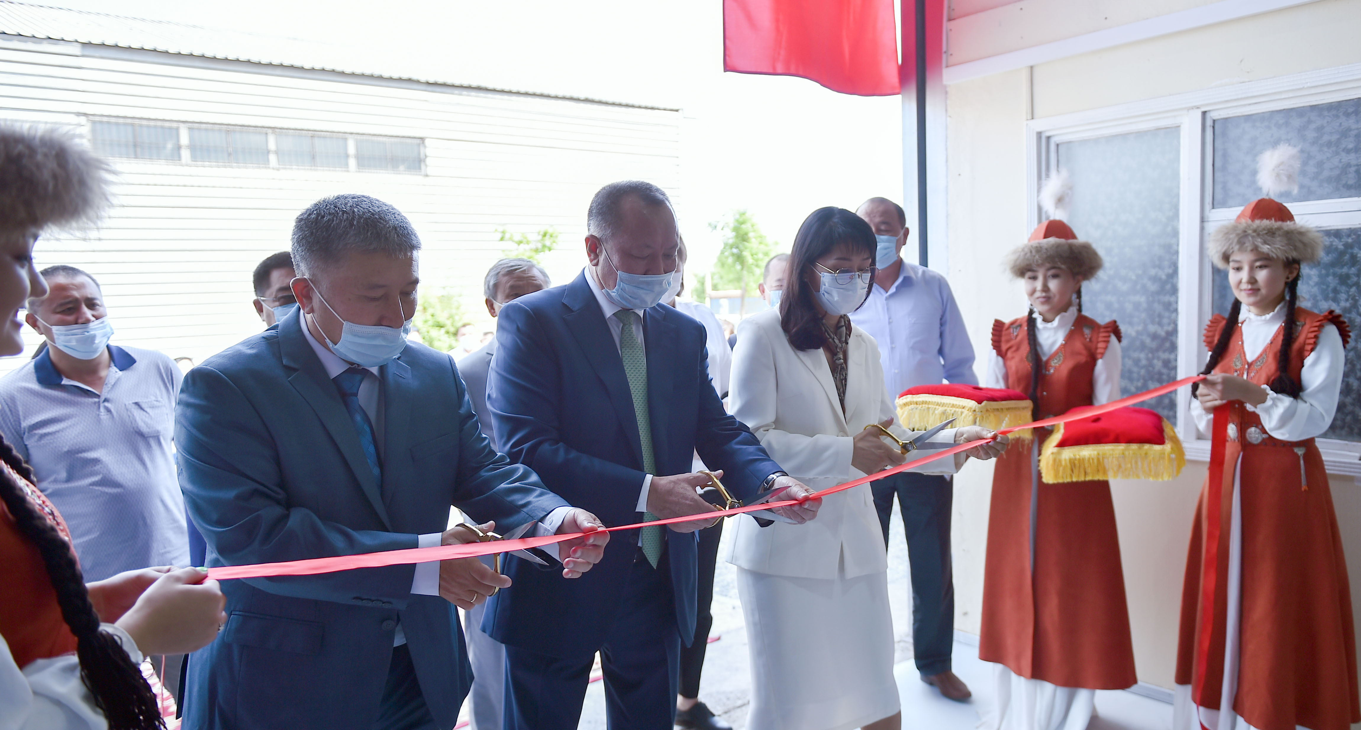 Вице-премьер-министр Аида Исмаилова бир жолу колдонулуучу беткаптарды чыгаруу боюнча өндүрүштүн ачылыш салтанатына катышты