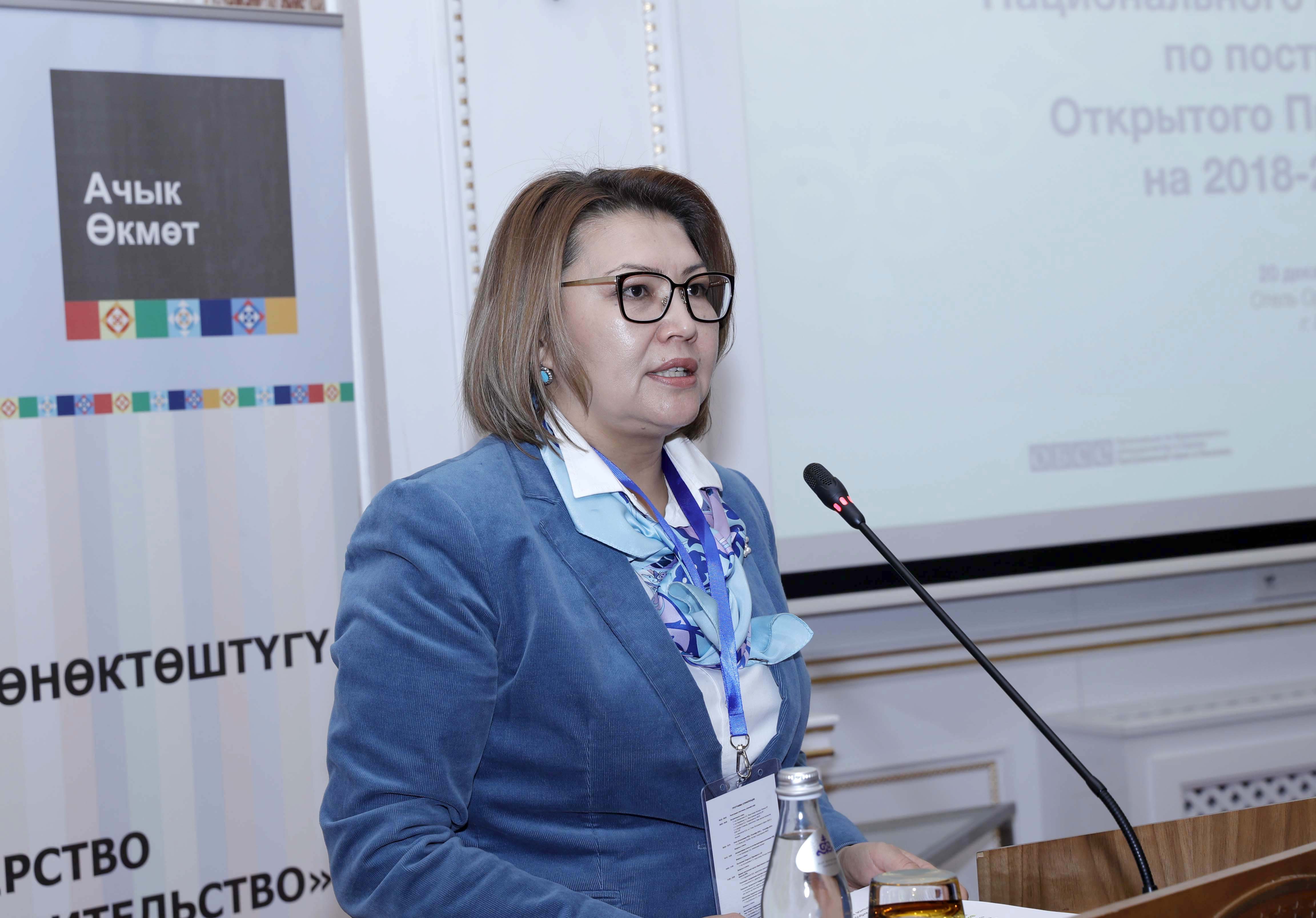 Вице-премьер-министр Алтынай Өмүрбекова: «Ачык Өкмөттү» ишке ашыруу маморгандар кабыл алган чечимдердин сапатын жакшыртып, өкмөткө карата ишенимди арттырат