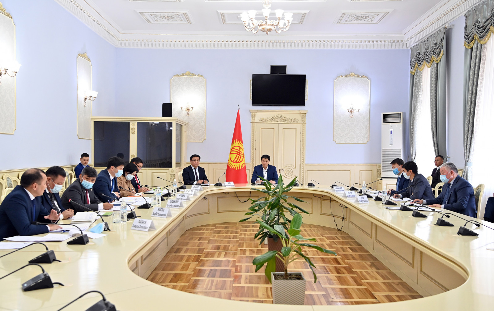 Председатель Кабинета Министров Кыргызской Республики Улукбек Марипов провел совещание, на котором был рассмотрен комплекс мер, предпринимаемых органами государственной власти по стабилизации цен на социально-значимые продовольственные товары, бензин и дизельное топливо.