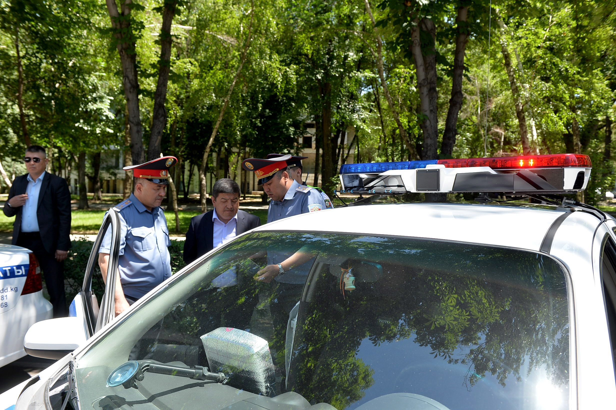 Главе Кабмина также рассказали о том, как в рабочих целях используются служебные планшеты и персональные камеры, которыми снабжены участковые милиционеры в городе Бишкеке и в регионах республики.
