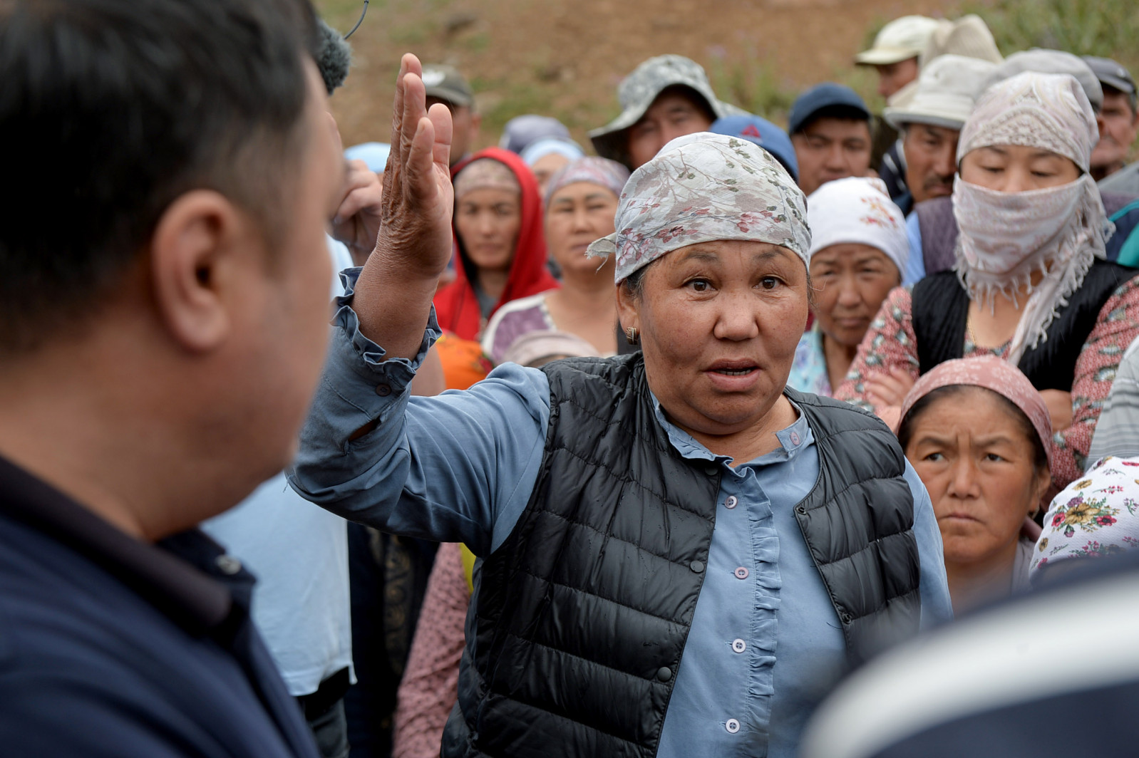 Собравшиеся жители требовали аннулировать лицензию, которая позволяет добывать камень на участке Сары-Таш вблизи села, а также прекратить деятельность геологоразведочных компаний.