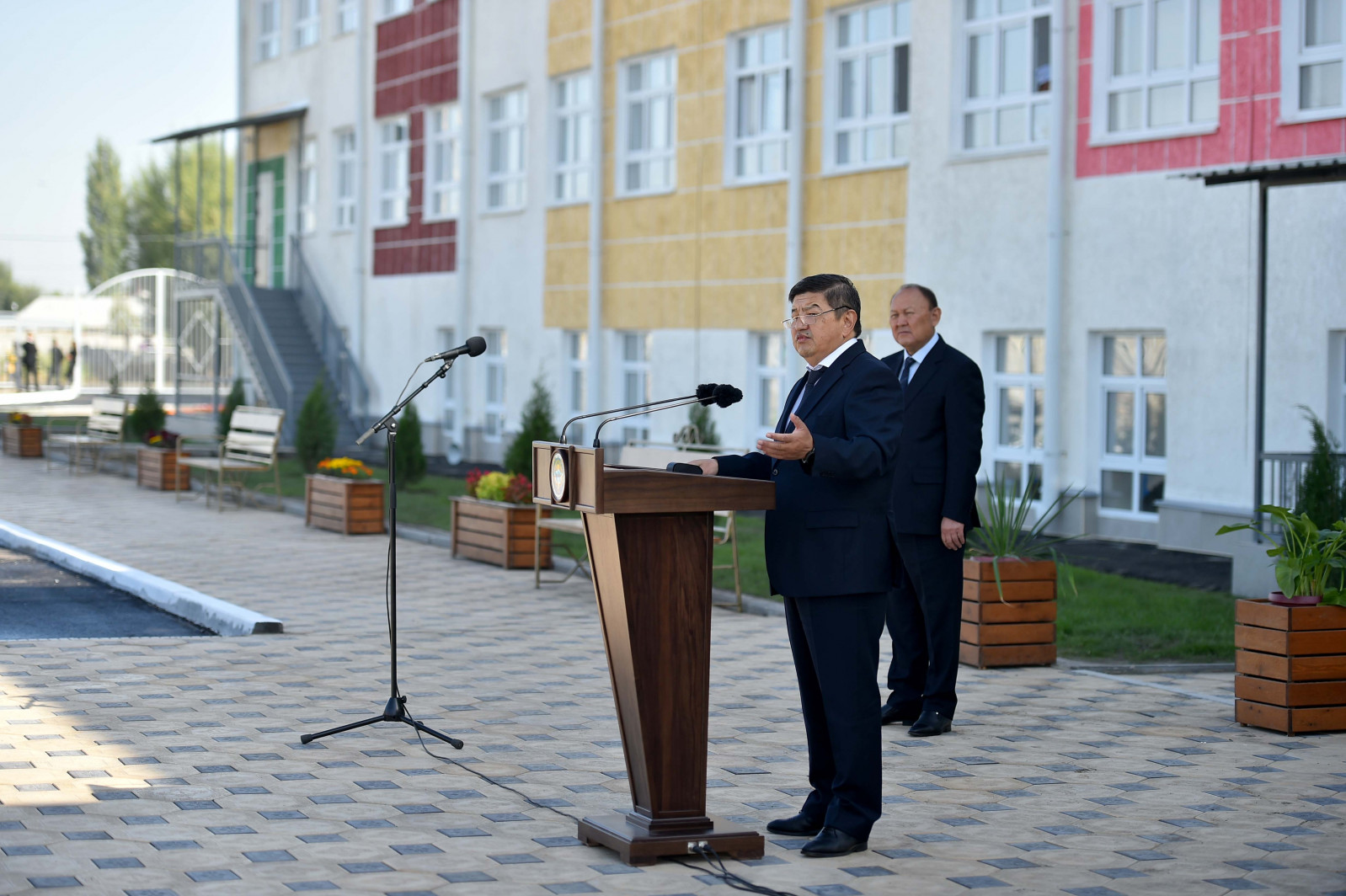 «Сегодня мы открываем школу, которую не могли достроить 5 лет. На ее строительство было выделено около 136 млн сомов. Школа оснащена современной техникой и соответствует международным стандартам. В частности, в 40 классах установлены проекторные экраны, имеются столярный и кулинарный классы, установлено швейное оборудование, построен спортивный зал и спортплощадка. Кроме того, открыт стоматологический кабинет. Все эти условия раньше были только в частных школах, а теперь будут и в государственных. Указанная инфраструктура создана на бюджетные средства, а не на средства доноров», - сказал он.
