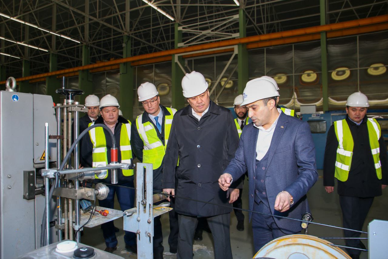 В рамках посещения завода Бакыт Торобаев ознакомился с полным циклом производства кабельной продукции, состоящей из 30 видов, поставляемых на промышленные предприятия как внутри страны, так и за ее пределы, в том числе в страны Азии и Европы.