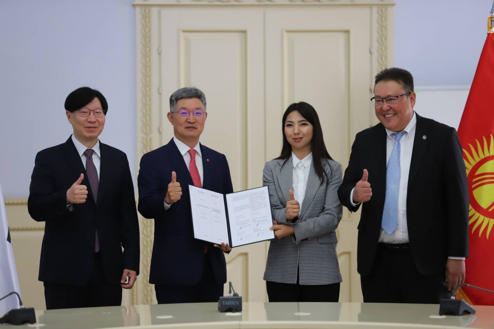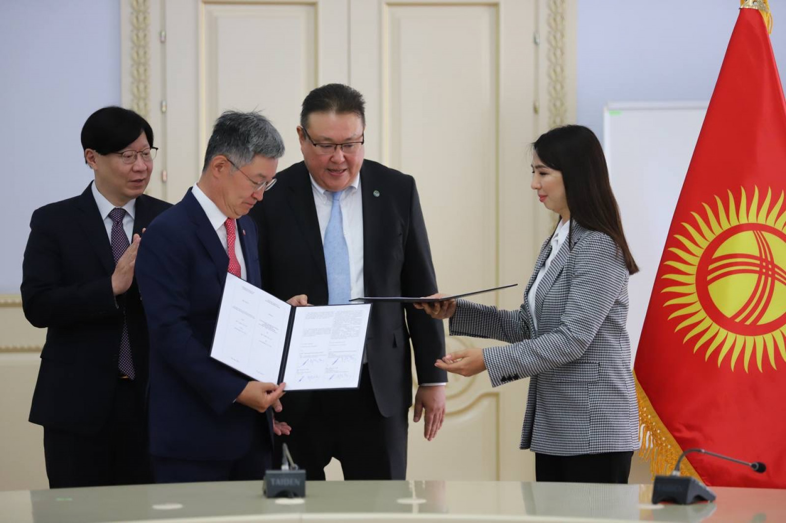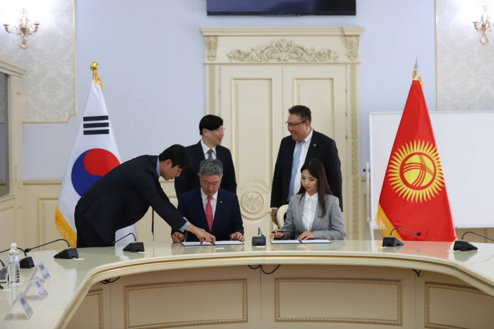 Начальник управления политических и экономических исследований Администрации Президента Кыргызской Республики Алмаз Исанов встретился с представителями делегации Республики Корея, прибывшей в Кыргызстан для подписания соглашения по созданию совместного провайдера торговых услуг.