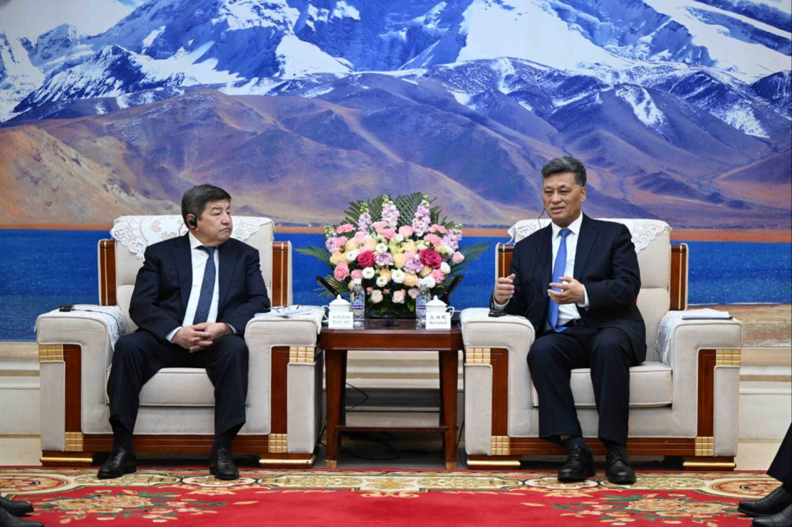 Председатель Кабинета Министров-Руководитель Администрации Президента Кыргызской Республики Акылбек Жапаров в рамках рабочего визита в Китайскую Народную Республику встретился с членом Политического бюро Центрального комитета Коммунистической партии Китая, секретарем партийного комитета СУАР КНР Ма Синжуем.