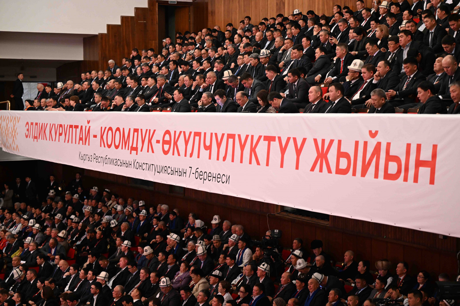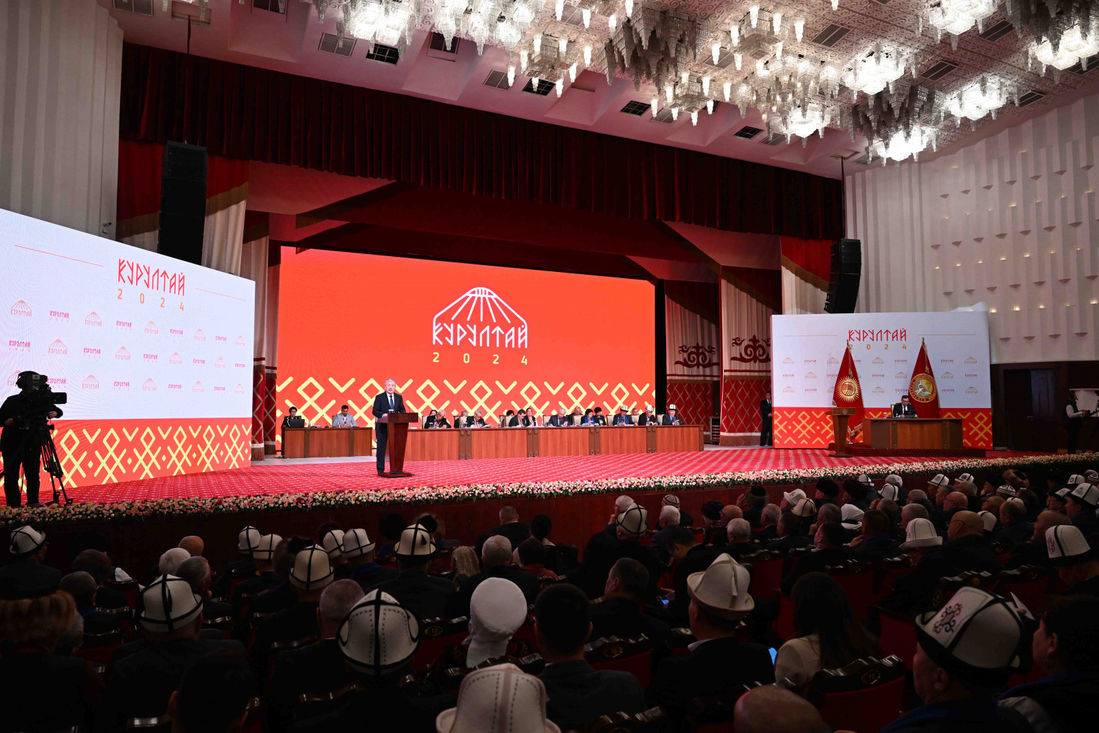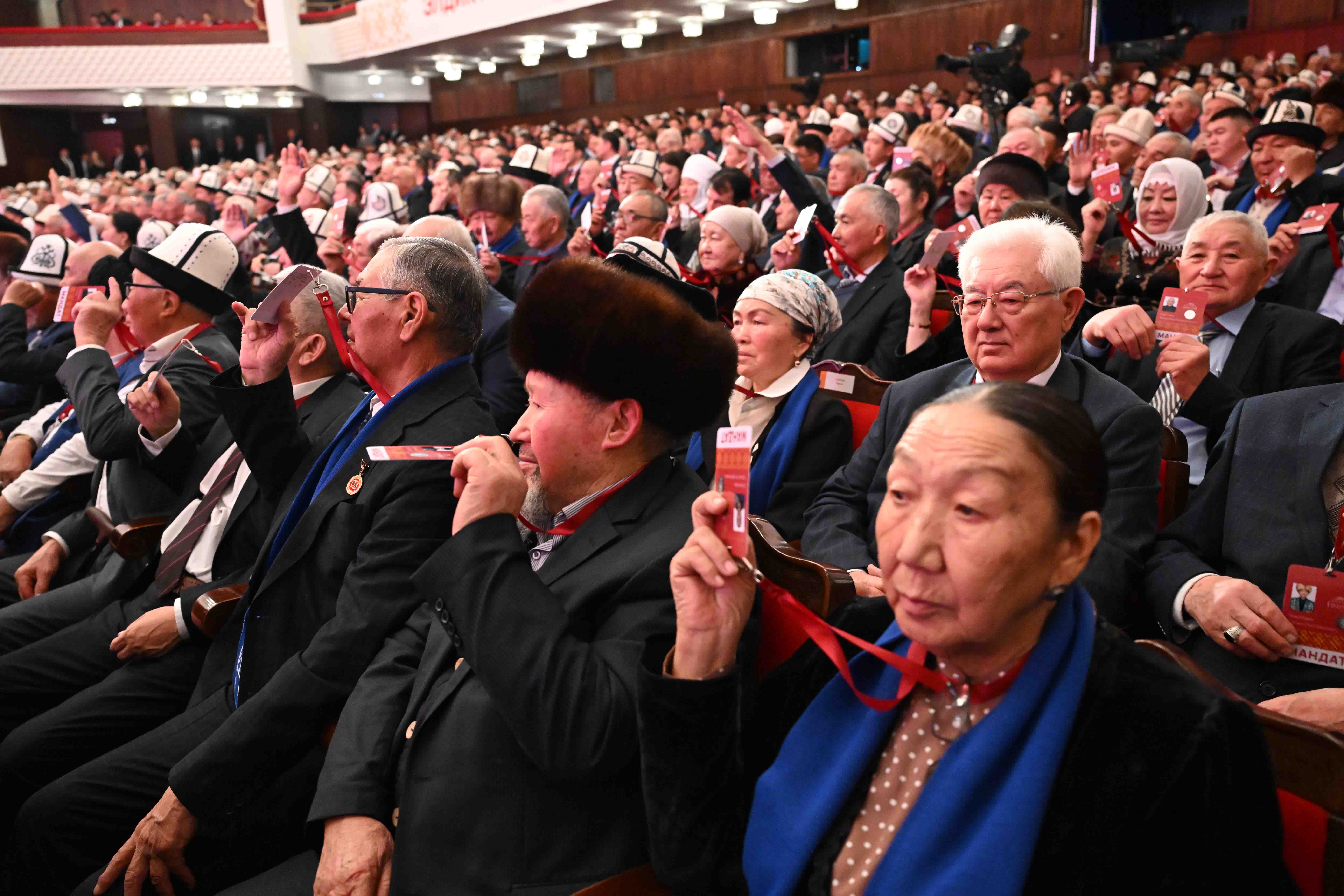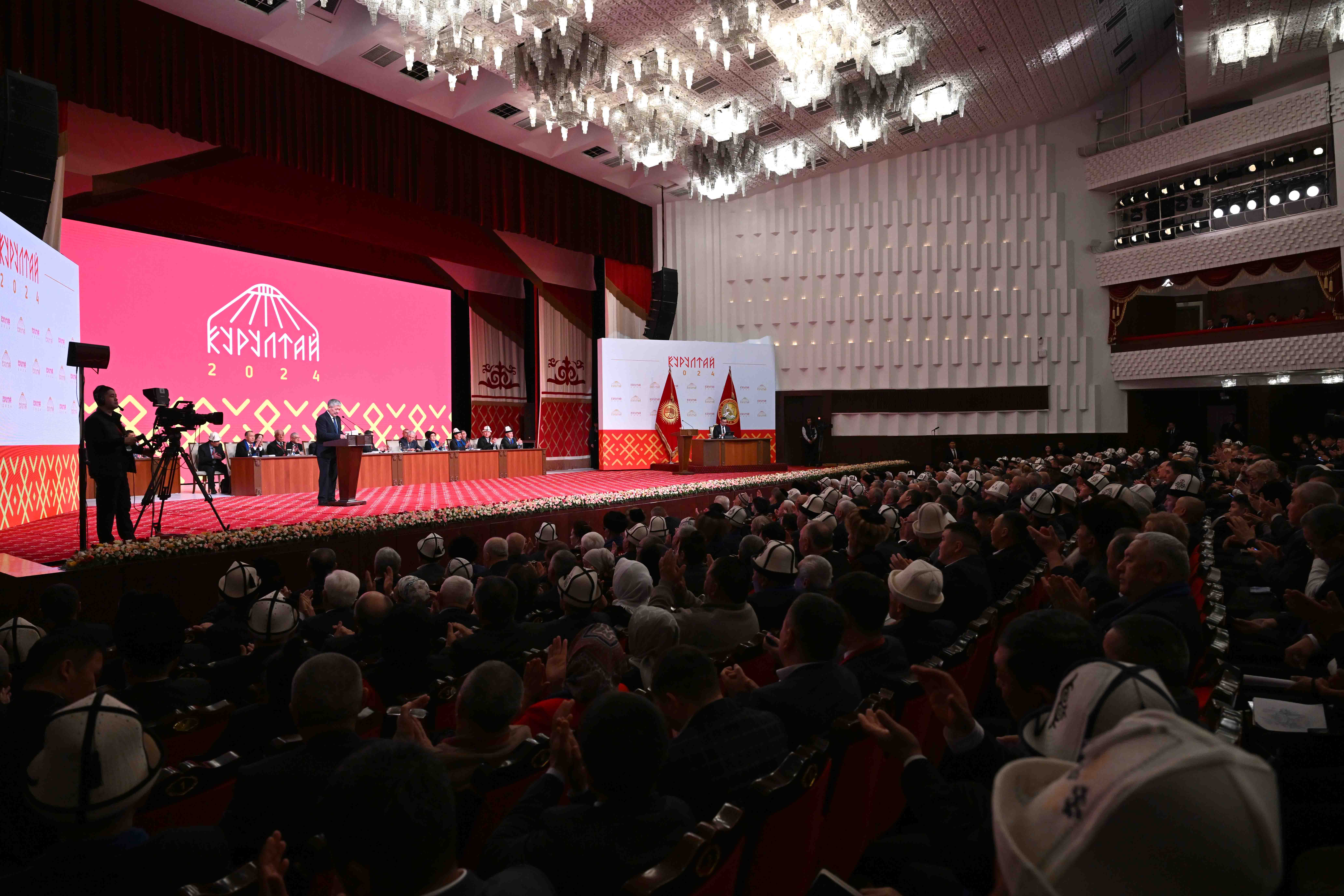 Председатель Кабинета Министров Кыргызской Республики — Руководитель Администрации Президента Адылбек Касымалиев выступил с докладом о направлениях и планах социально-экономического развития Кыргызской Республики на очередном III Народном Курултае.