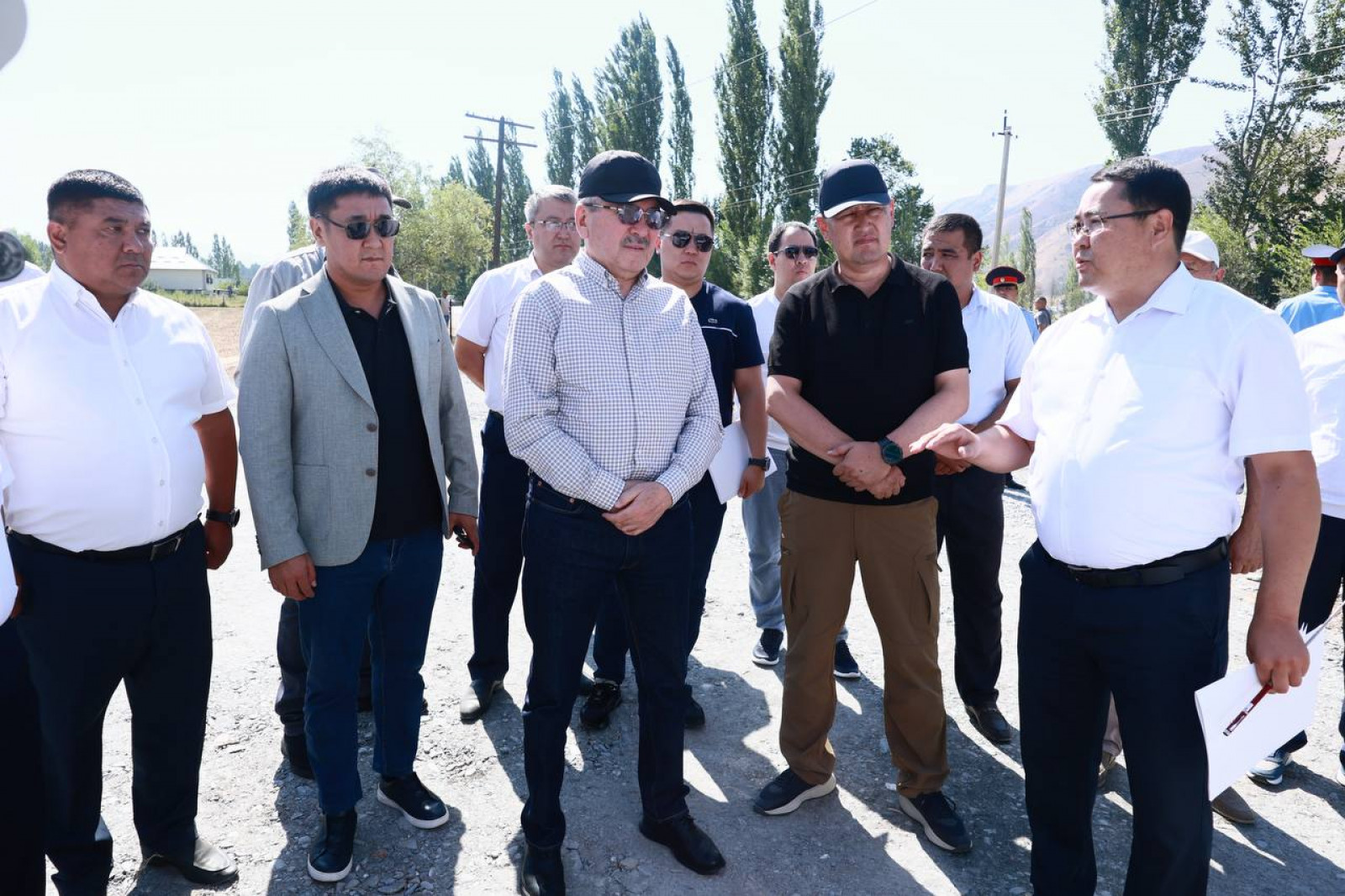 Кара-Кульджинский район Ошской области, 7 августа 2025 года — Председатель Кабинета Министров Кыргызской Республики – Руководитель Администрации Президента Адылбек Касымалиев в рамках рабочей поездки в Ошскую область ознакомился с ходом капитального ремонта международной автомобильной дороги Узген - Мырза-Аке - Кара-Кульджа.