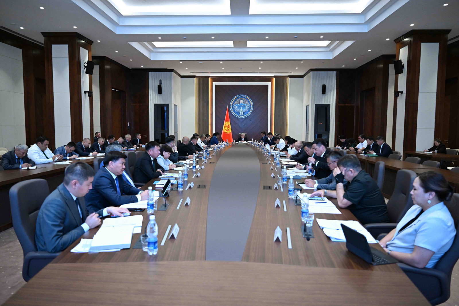 Ынтымак Ордо, 27 августа 2025 года – Председатель Кабинета Министров Кыргызской Республики – Руководитель Администрации Президента Кыргызской Республики Адылбек Касымалиев провел заседание Совета Кабинета Министров Кыргызской Республики по фискальной и инвестиционной политике.