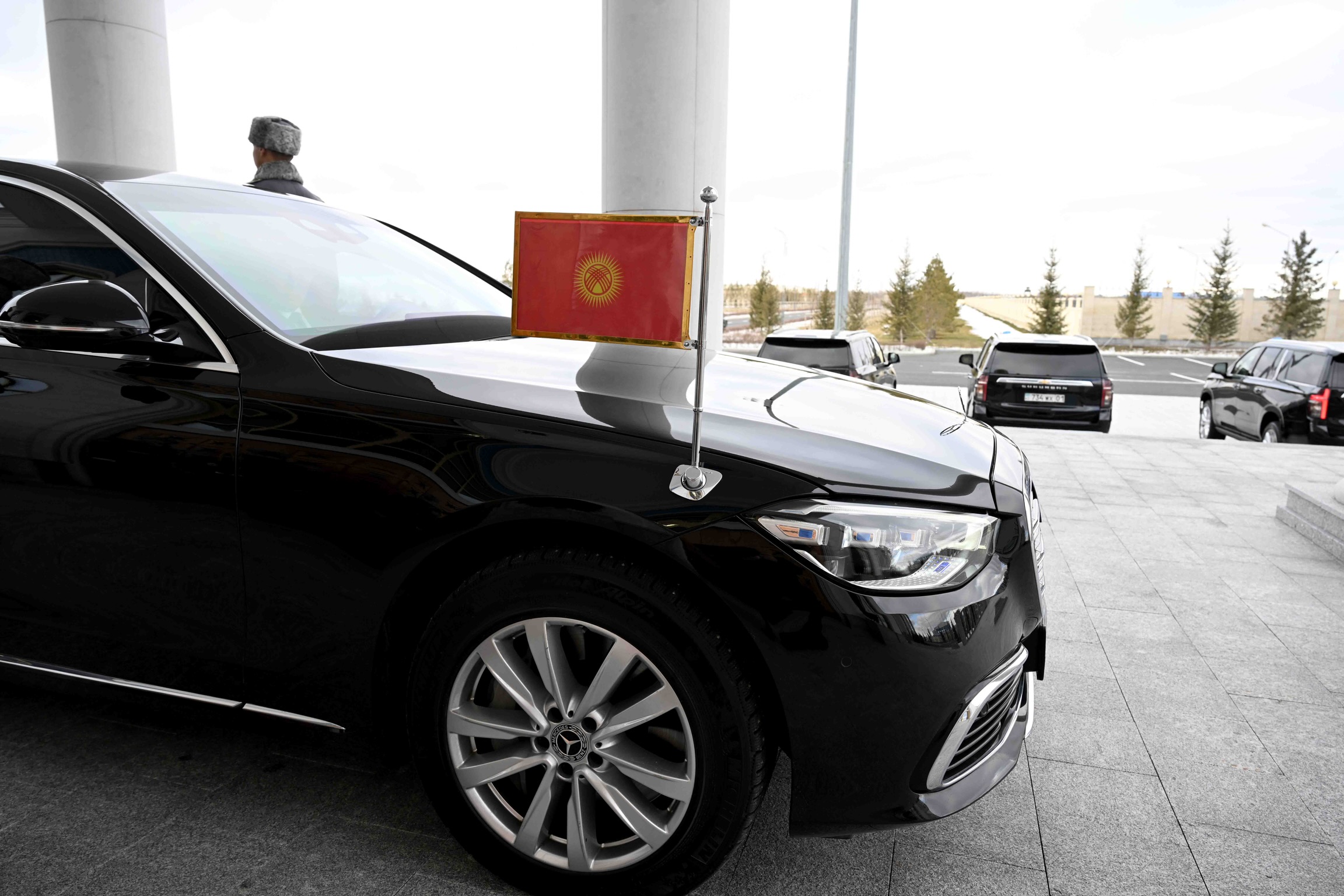 Председателя Кабинета Министров Адылбека Касымалиева встретил Премьер-министр Республики Казахстан Олжас Бектенов и другие официальные лица.