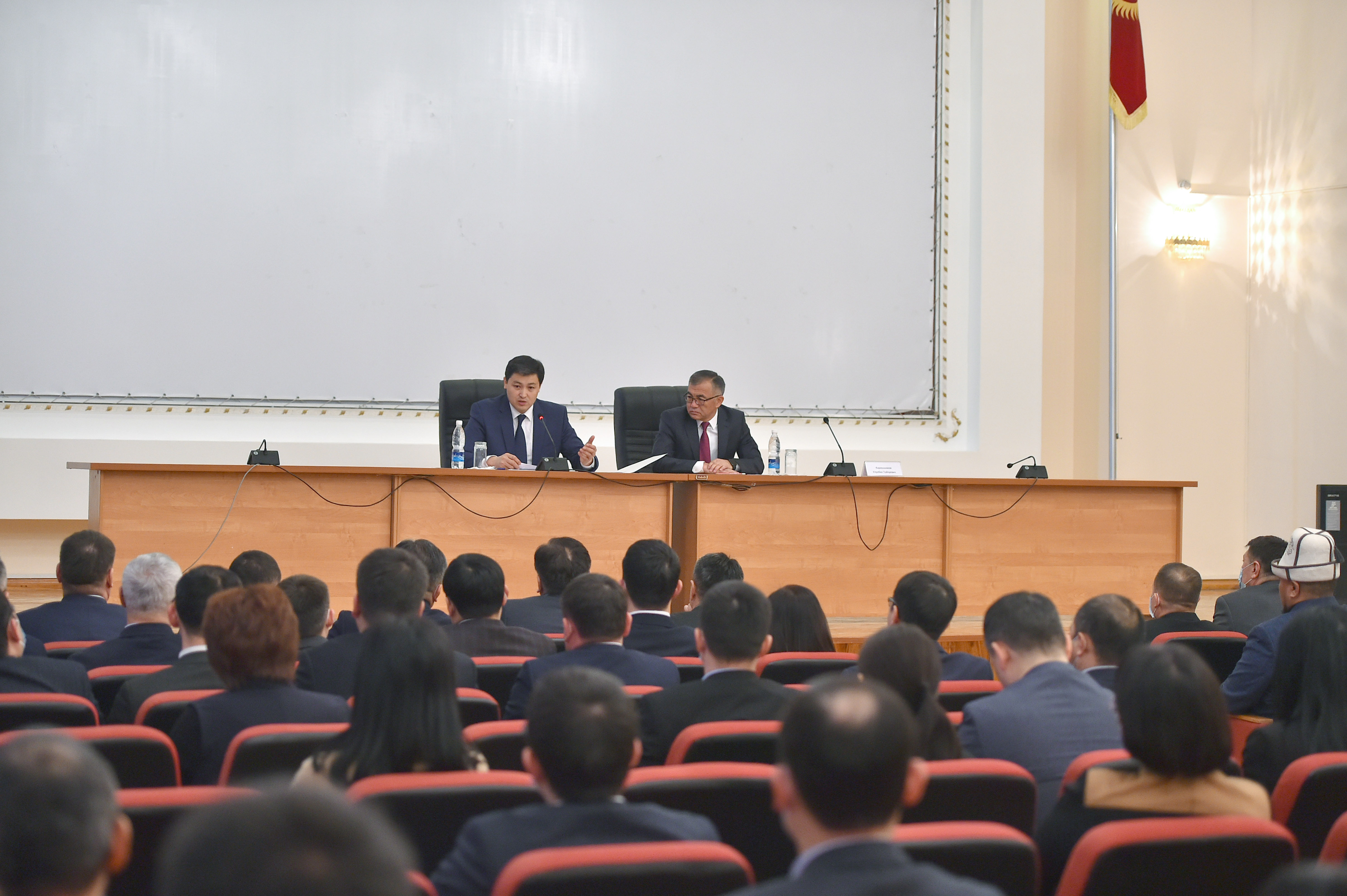 Премьер-министр Кыргызской Республики Улукбек Марипов представил коллективу центрального аппарата Министерства экономики и финансов Кыргызской Республики вице-премьер-министра — министра экономики и финансов Кыргызской Республики Улукбека Кармышакова.